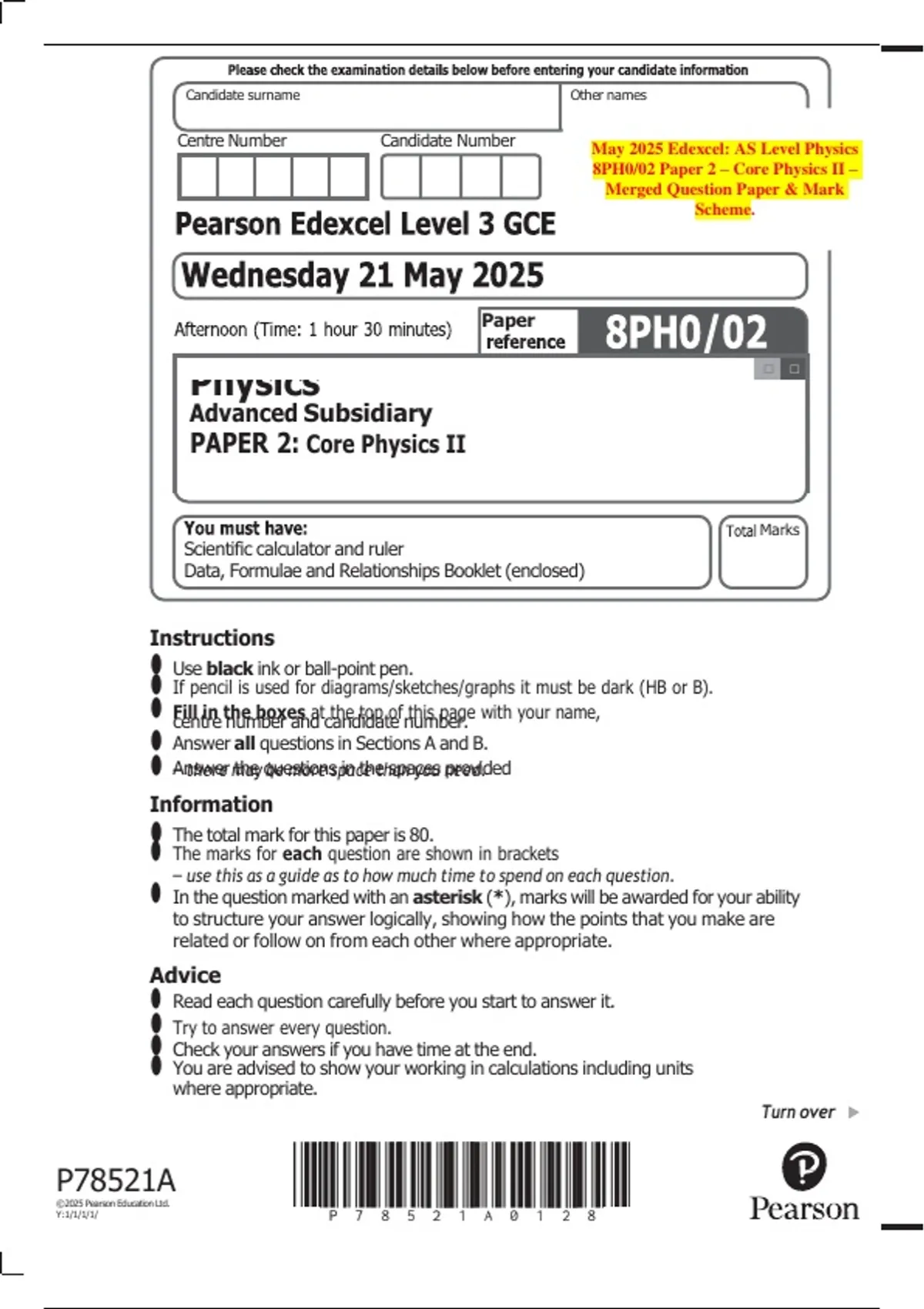 May 2025 Edexcel: AS Level Physics