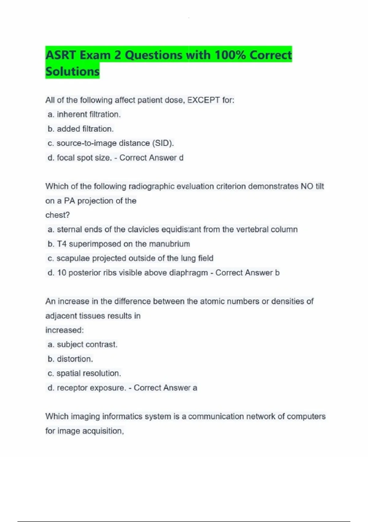 ASRT Exam 2 Questions with 100% Correct Solutions