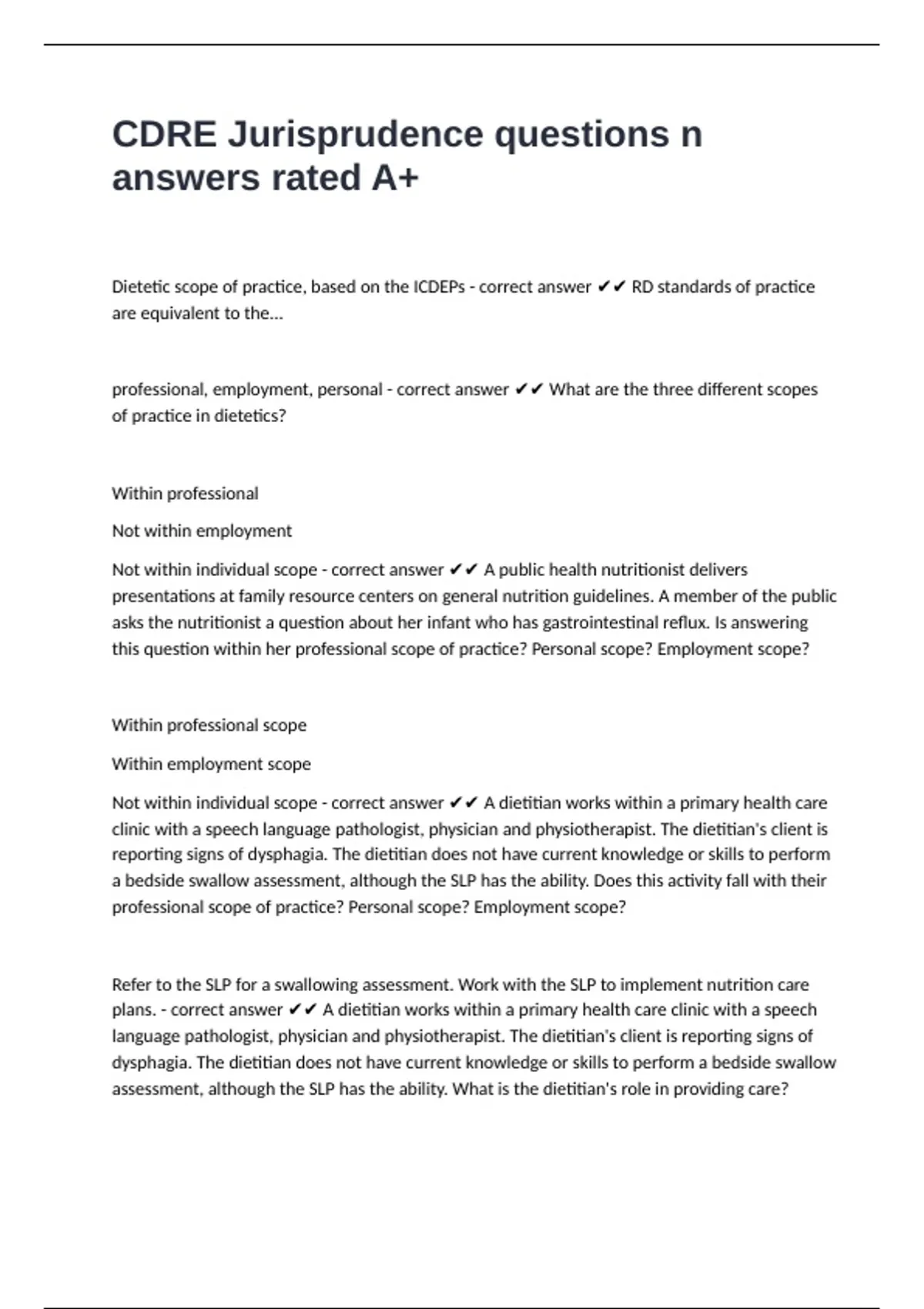 Not within individual scope - correct answer ✔✔ A dietitian works within a primary health care