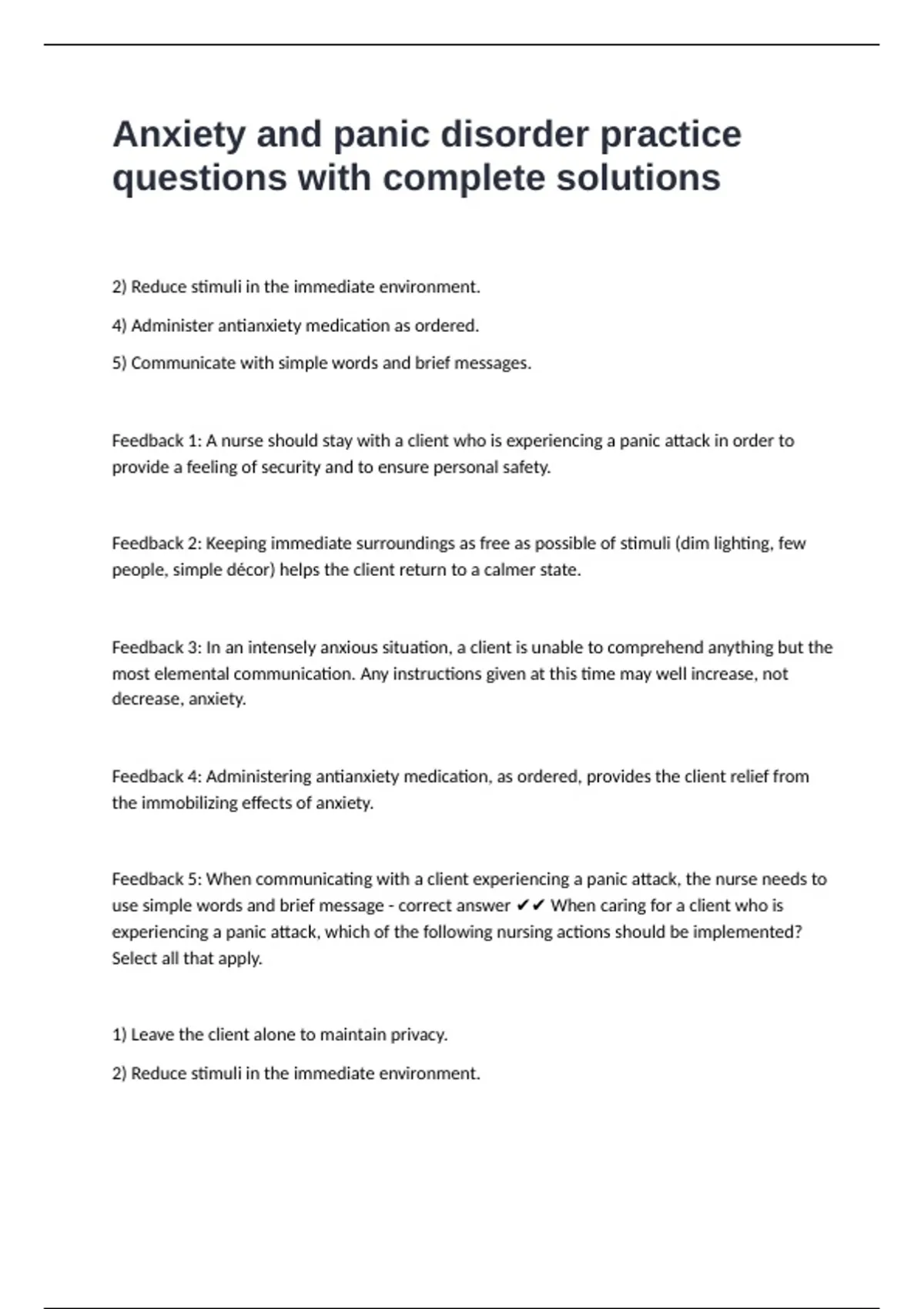 Feedback 1: A nurse should stay with a client who is experiencing a panic attack in order to