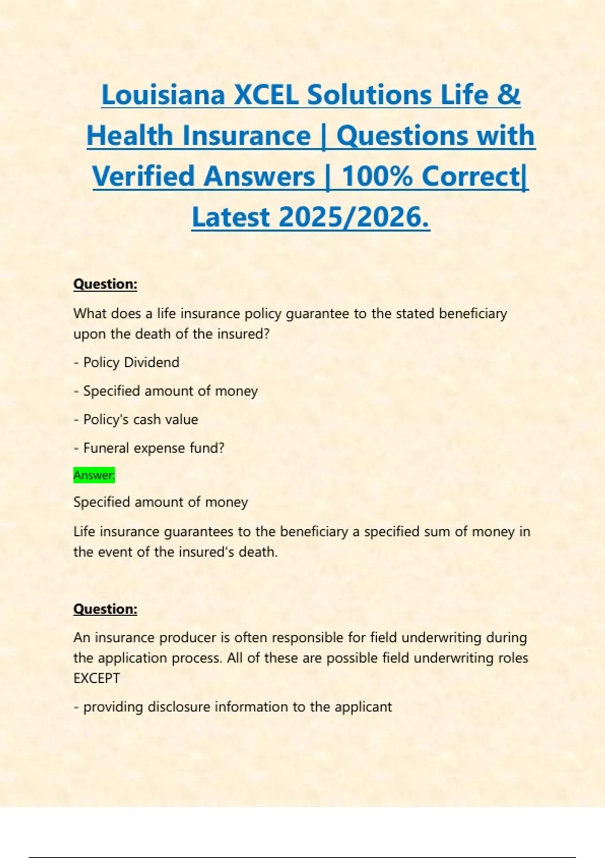 Life insurance guarantees to the beneficiary a specified sum of money in