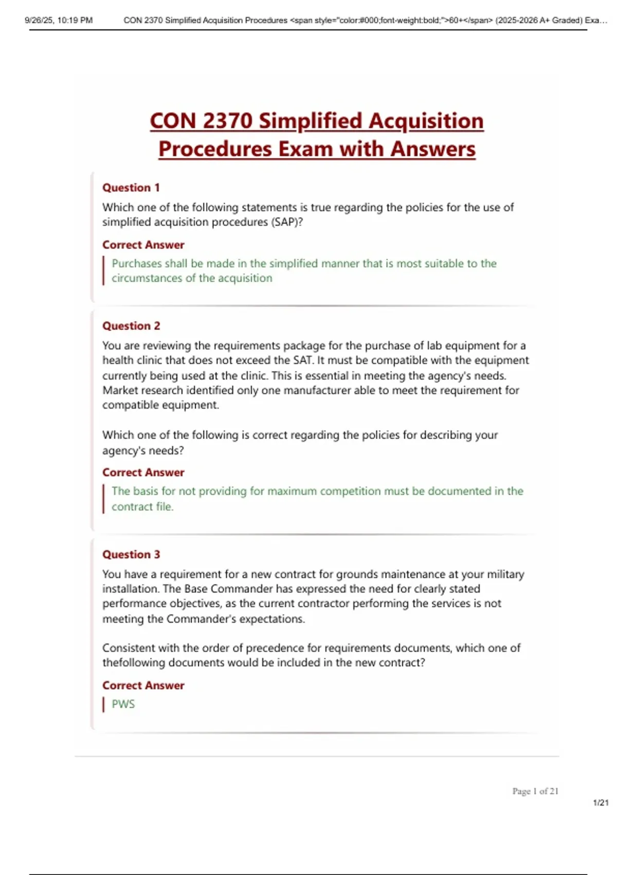 , 9/26/25, 10:19 PM CON 2370 Simplified Acquisition Procedures <span style="color:#000;font-weight:bold;">60+</span> (2025-2026 A+ Graded) Exa…