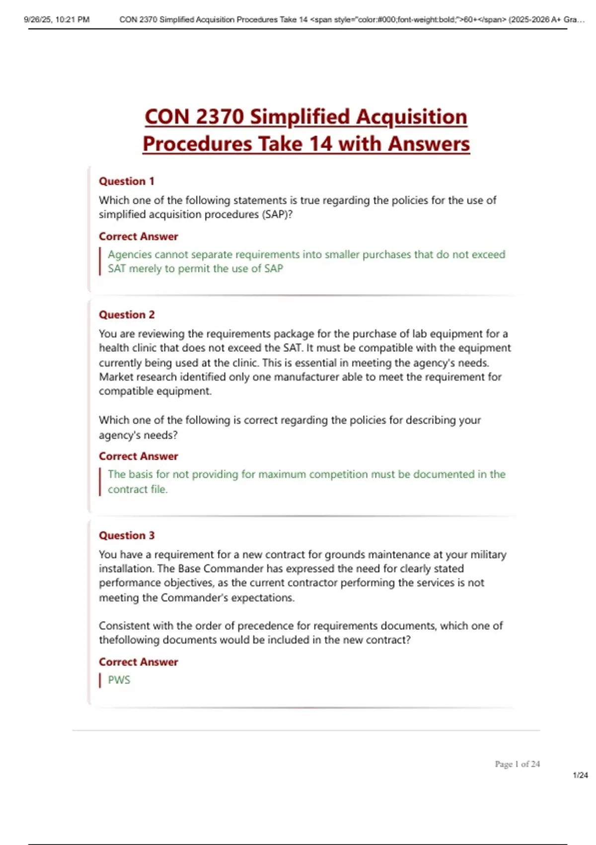 , 9/26/25, 10:21 PM CON 2370 Simplified Acquisition Procedures Take 14 <span style="color:#000;font-weight:bold;">60+</span> (2025-2026 A+ Gra…