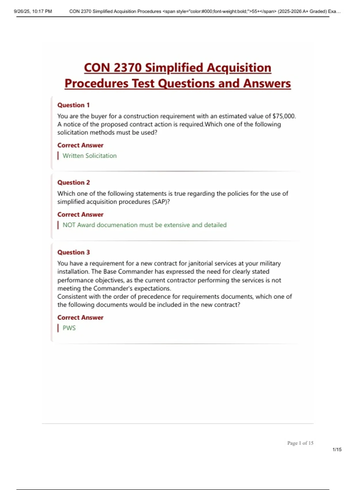 , 9/26/25, 10:17 PM CON 2370 Simplified Acquisition Procedures <span style="color:#000;font-weight:bold;">55+</span> (2025-2026 A+ Graded) Exa…