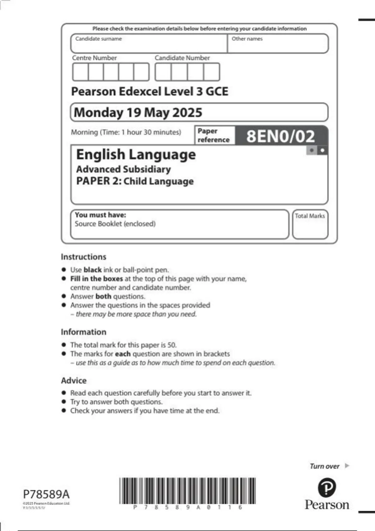 PEARSON EDEXCEL AS LEVEL ENGLISH LANGUAGE PAPER 2 JUNE 2025 FINAL QUESTION PAPER