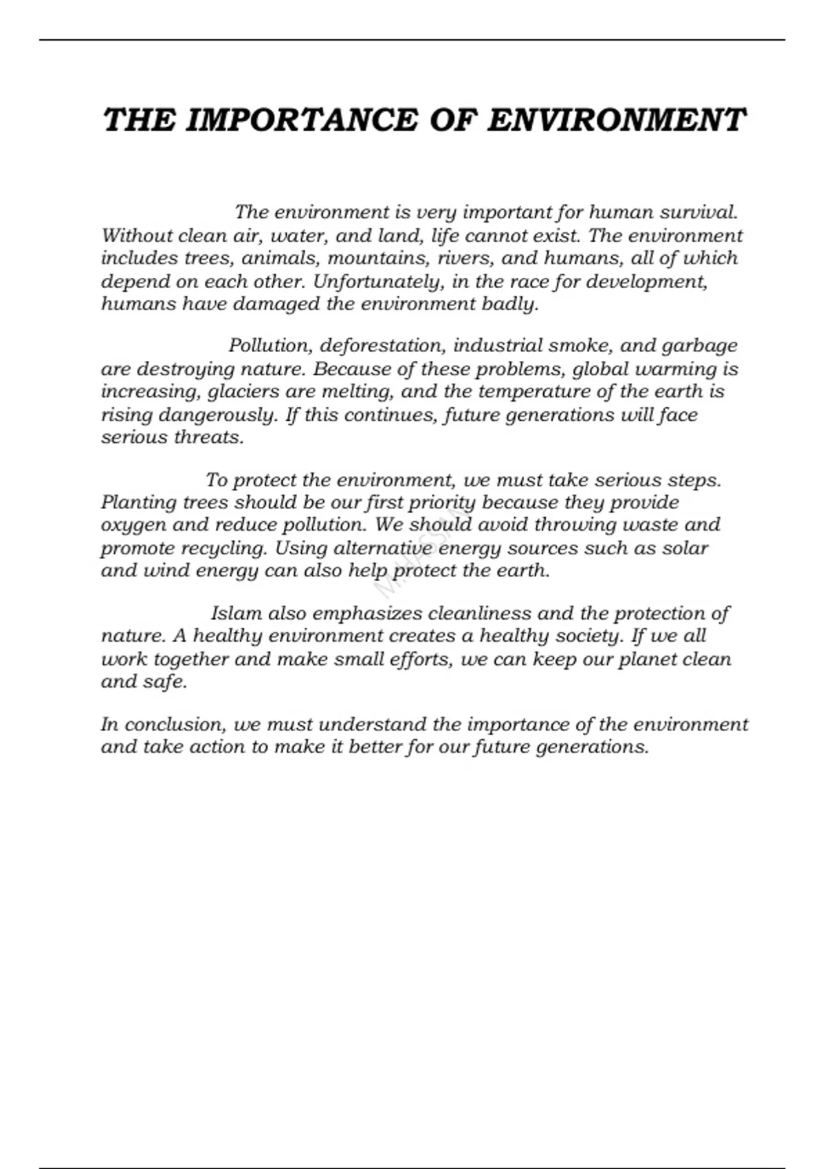 In conclusion, we must understand the importance of the environment