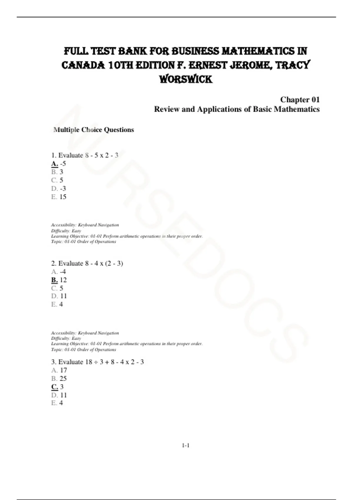 Learning Objective: 01-01 Perform arithmetic operations in their proper order.