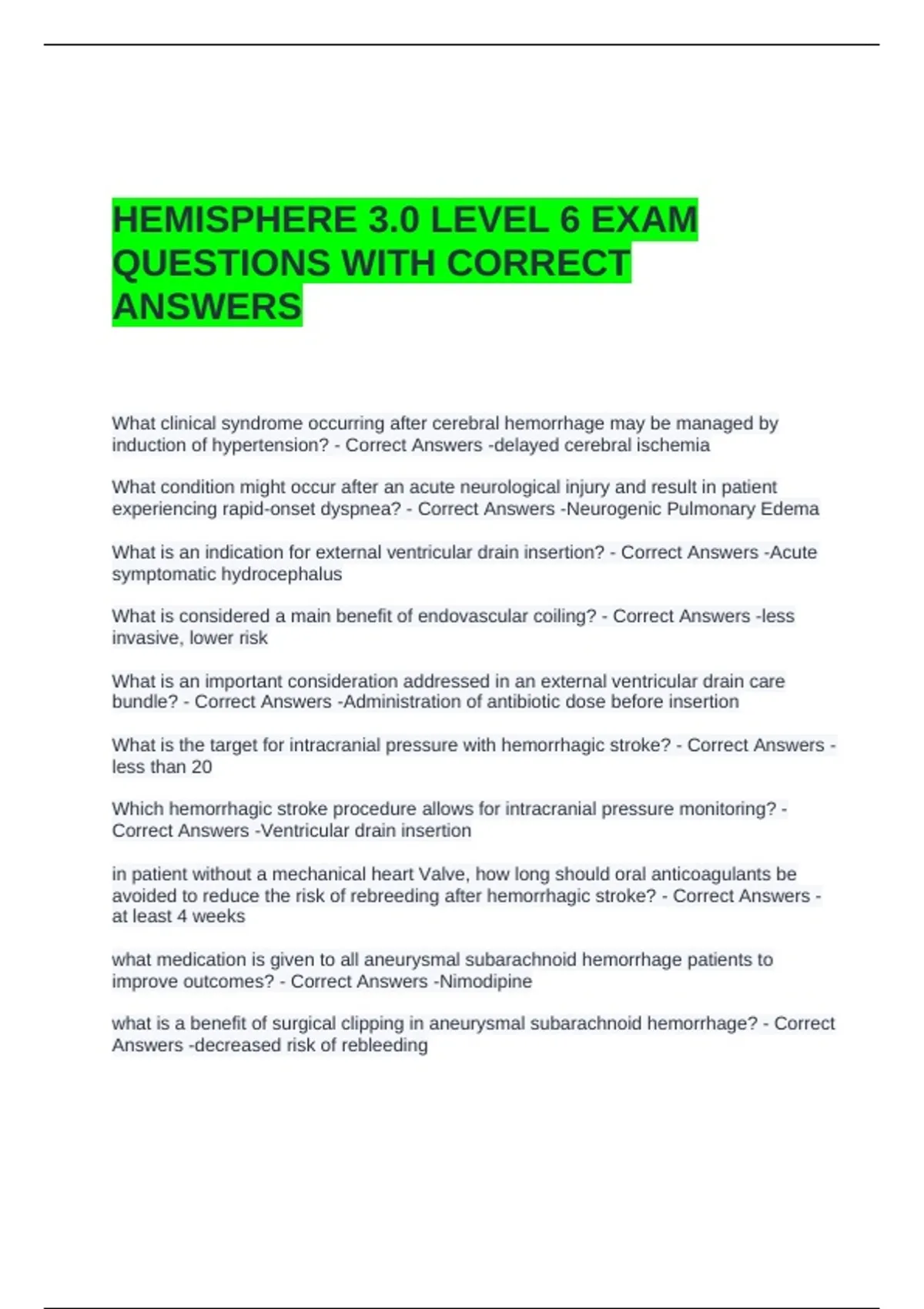 HEMISPHERE 3.0 LEVEL 6 EXAM QUESTIONS WITH CORRECT ANSWERS