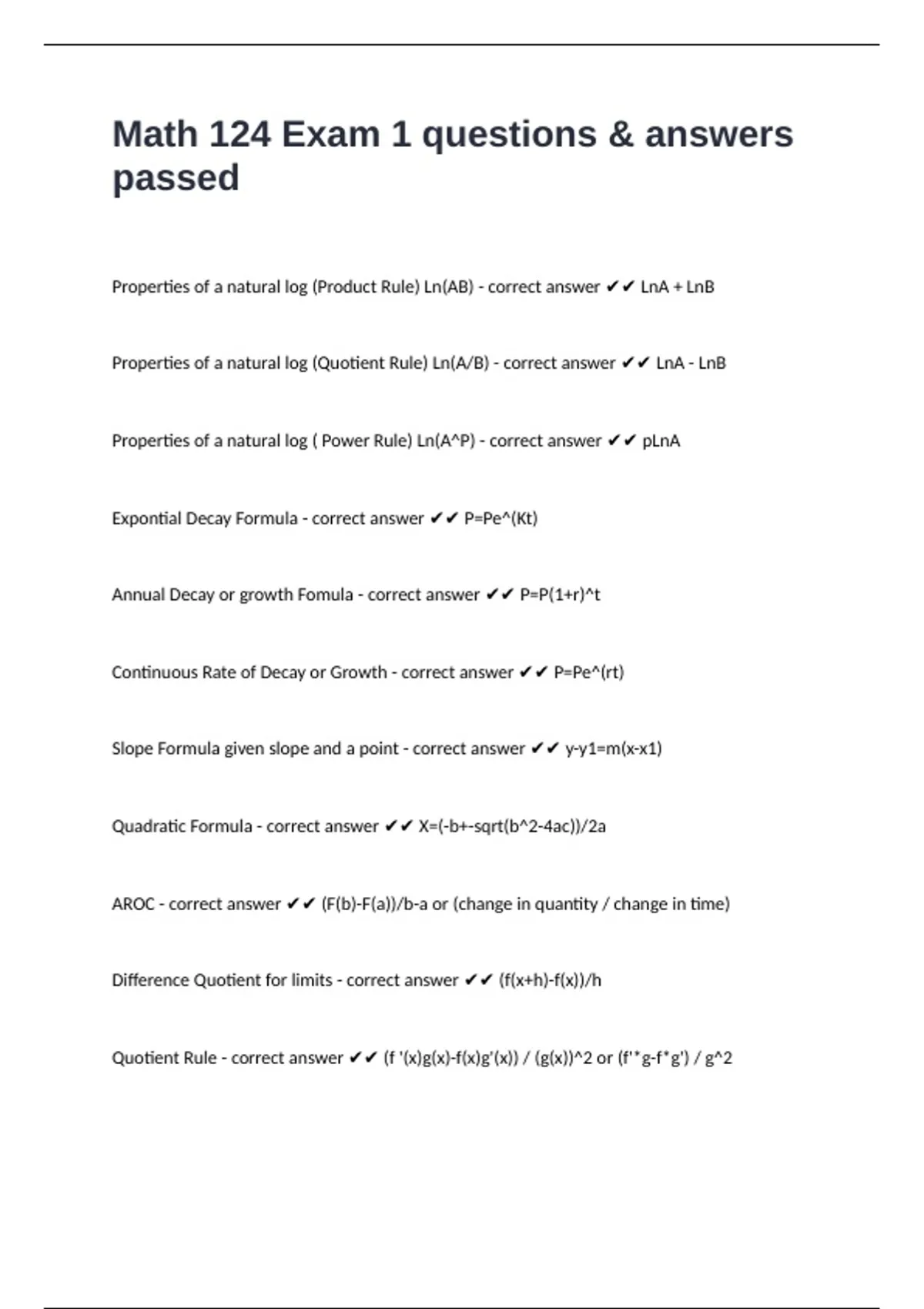 Properties of a natural log (Quotient Rule) Ln(A/B) - correct answer ✔✔ LnA - LnB