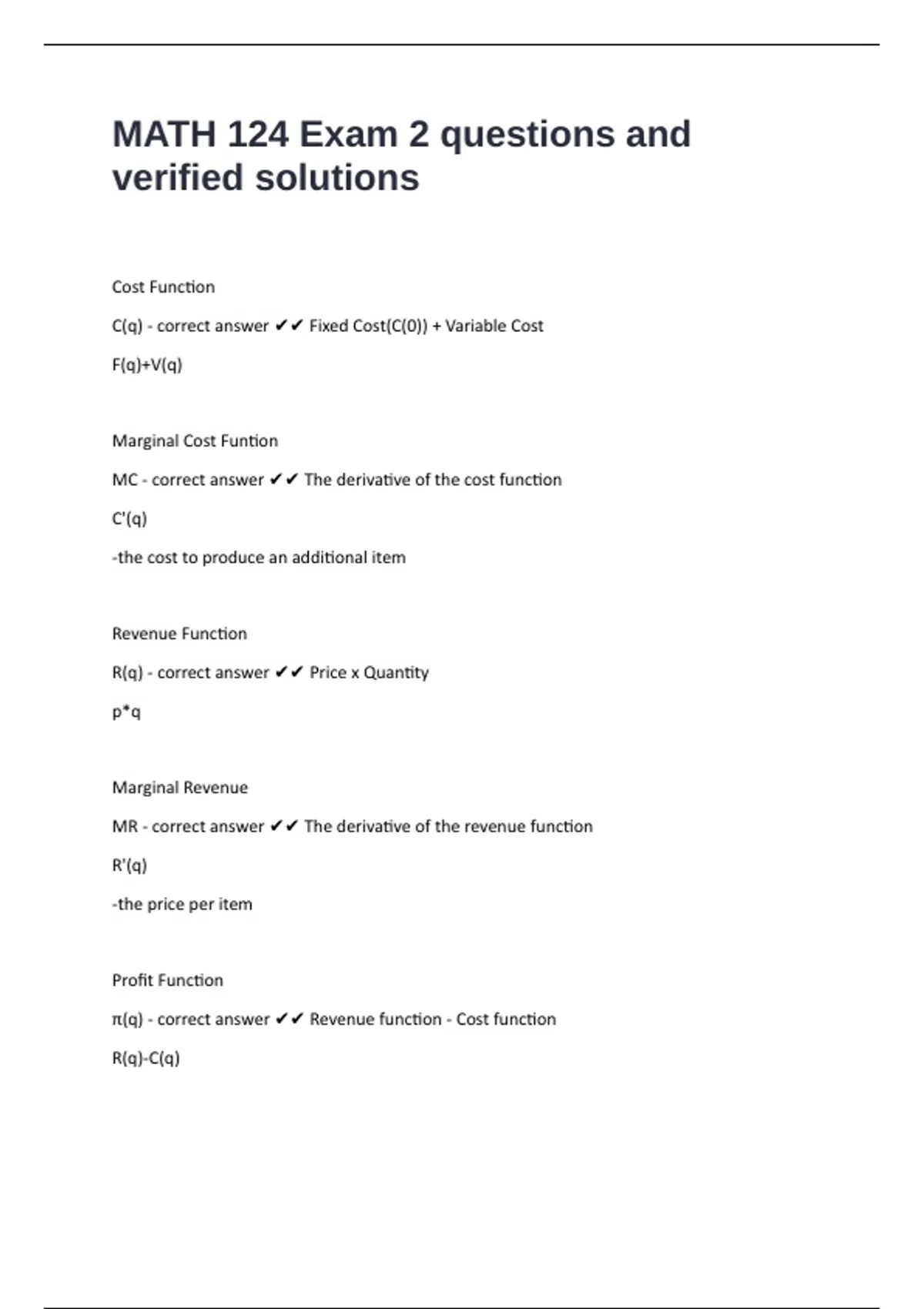 C(q) - correct answer ✔✔ Fixed Cost(C(0)) + Variable Cost