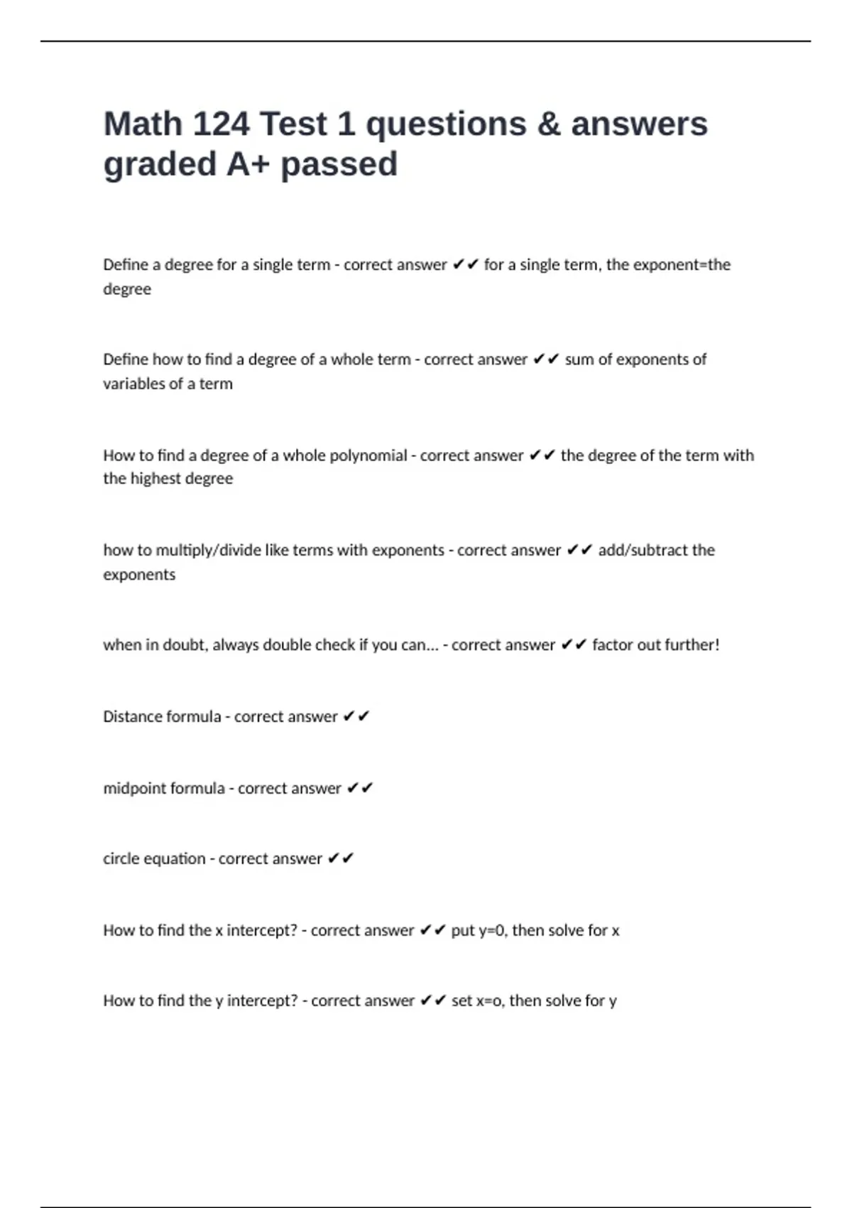 Define a degree for a single term - correct answer ✔✔ for a single term, the exponent=the