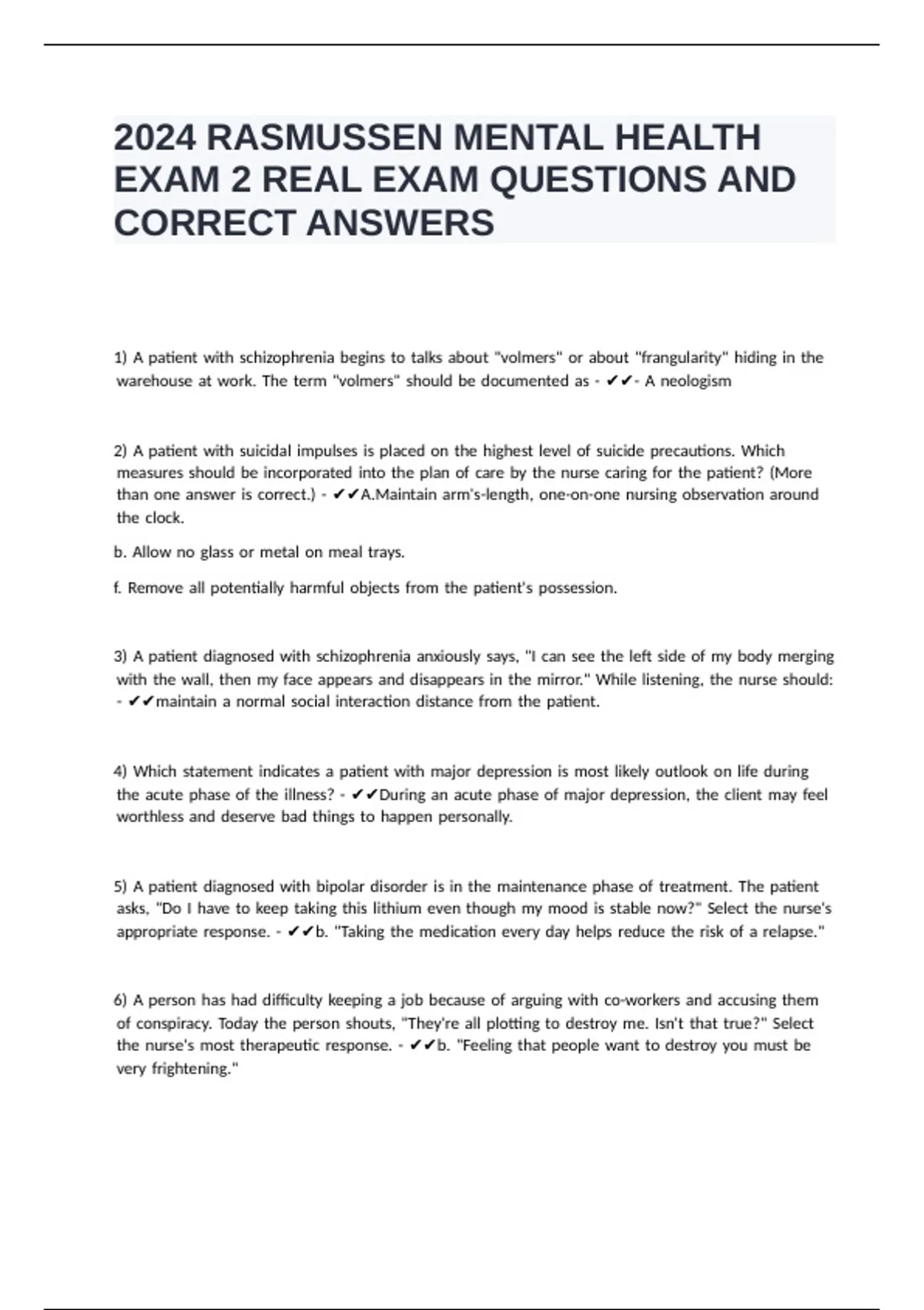 2) lA lpa�ent lwith lsuicidal limpulses lis lplaced lon lthe lhighest llevel lof lsuicide lprecau�ons. lWhich