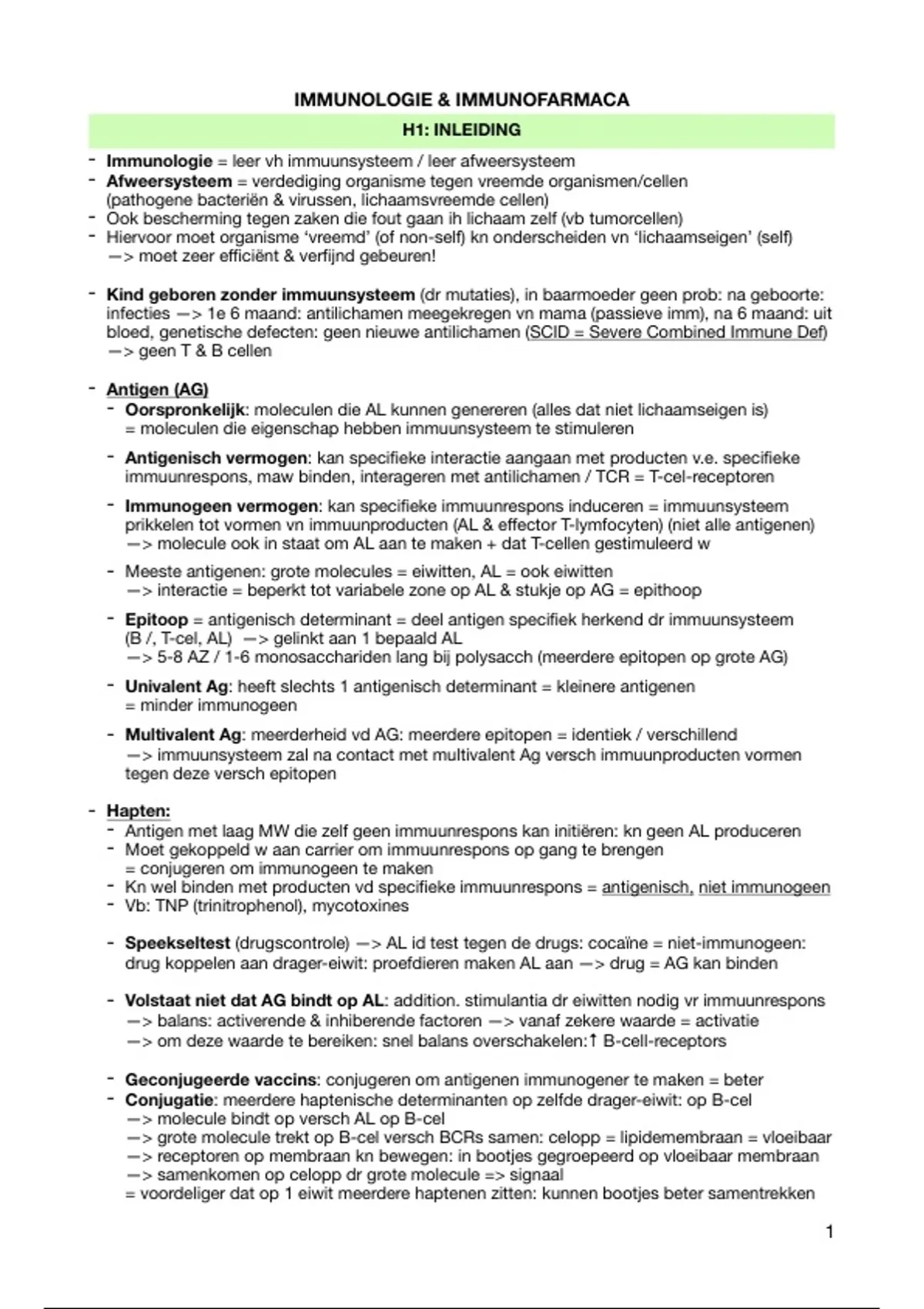 Samenvatting Immunologie & Immunofarmaca