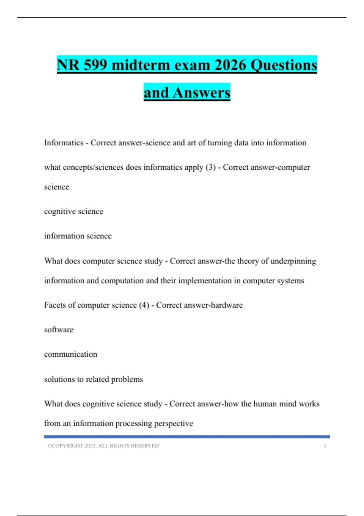 NR 599 midterm exam 2026 Questions