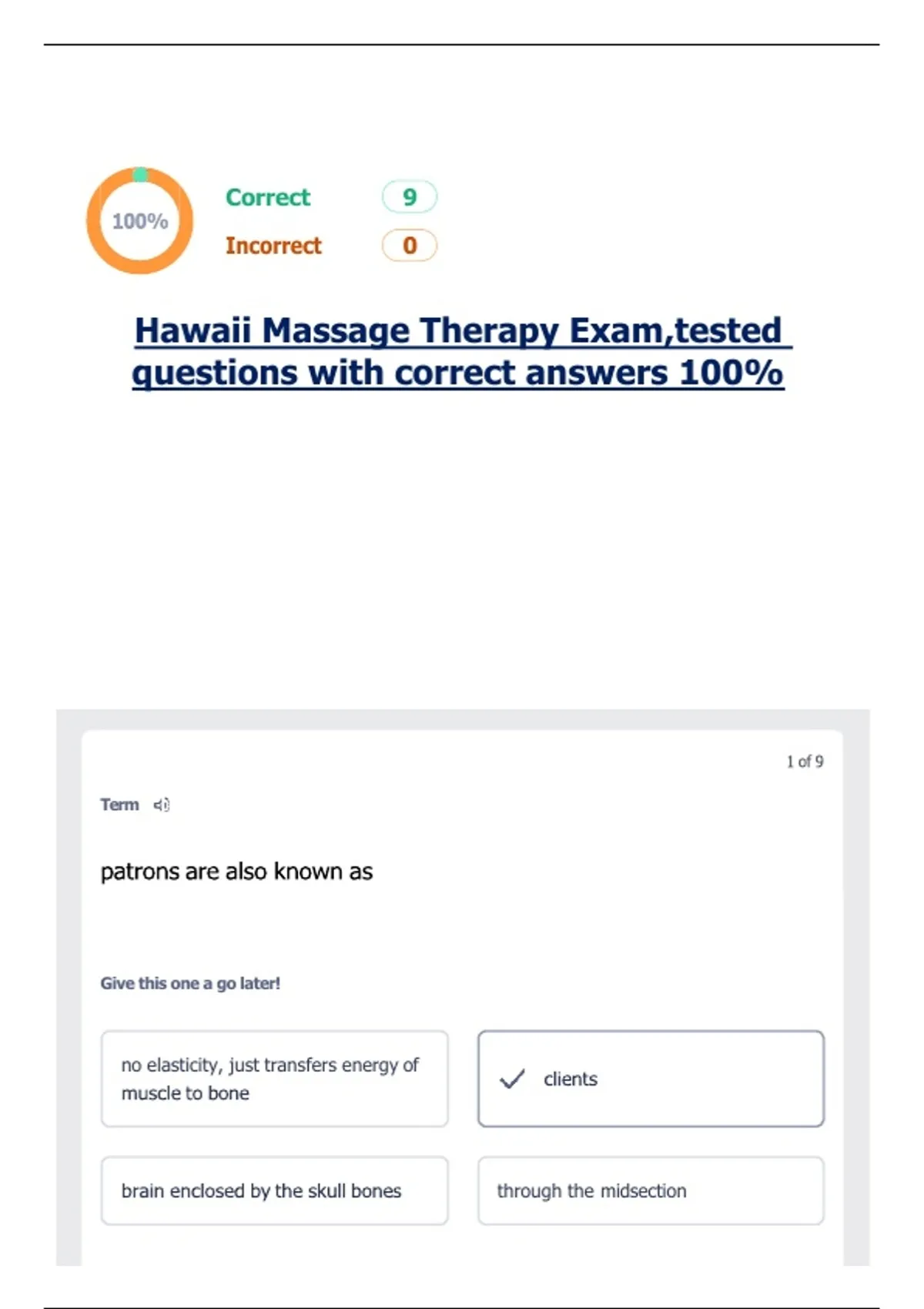 , Hawaii Massage Therapy Exam,tested questions with correct answers 100%