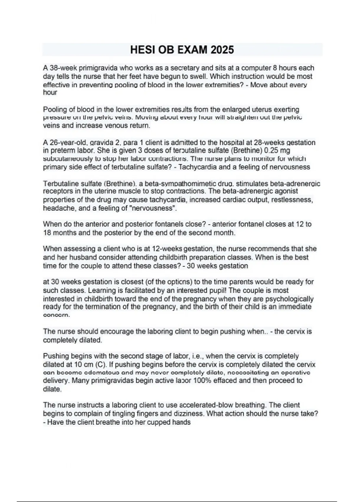 HESI OB EXAM 2025
