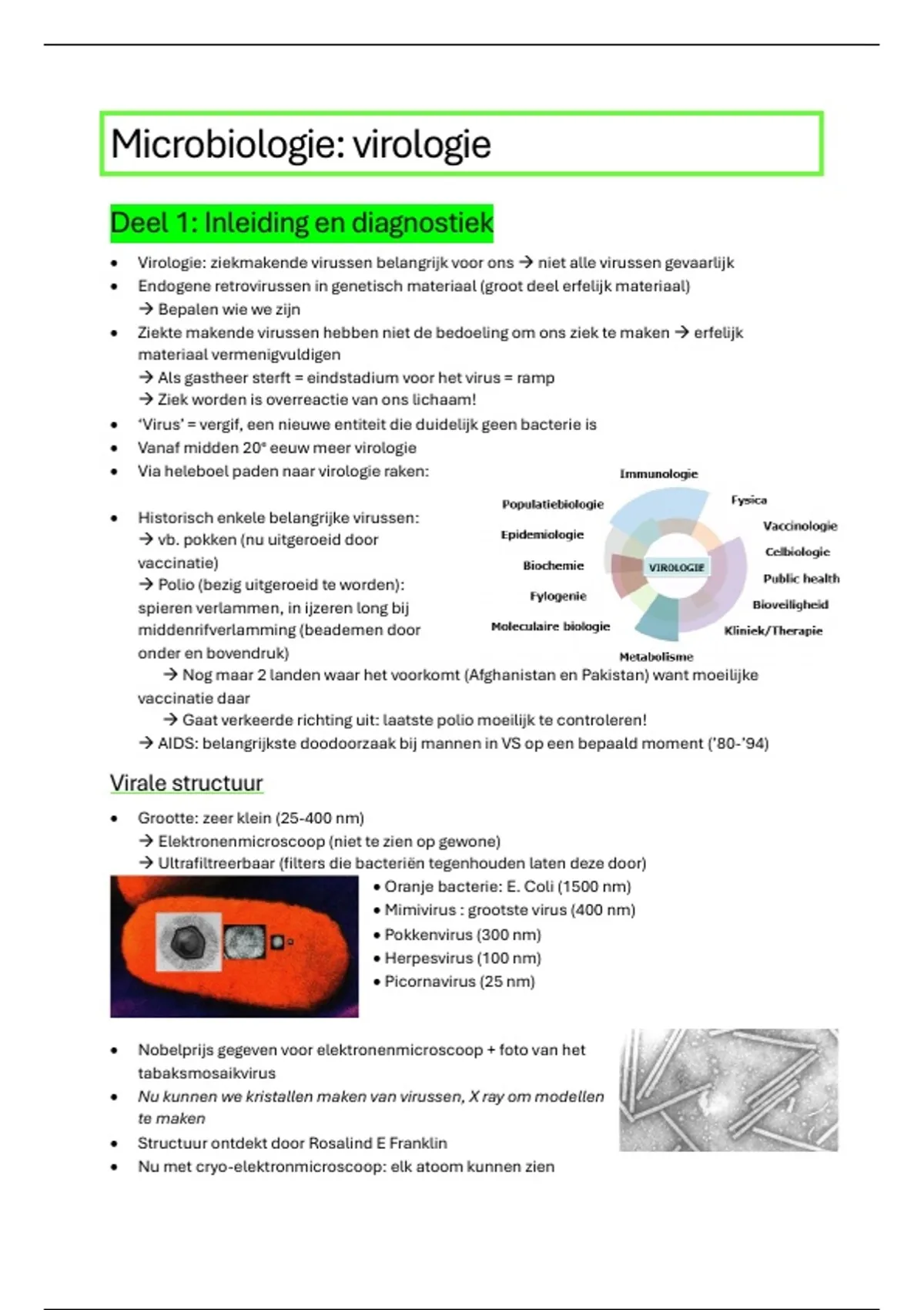 Volledige samenvatting virologie