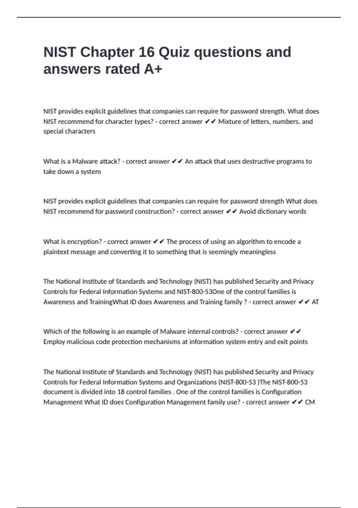 NIST Chapter 16 Quiz questions and answers rated A+