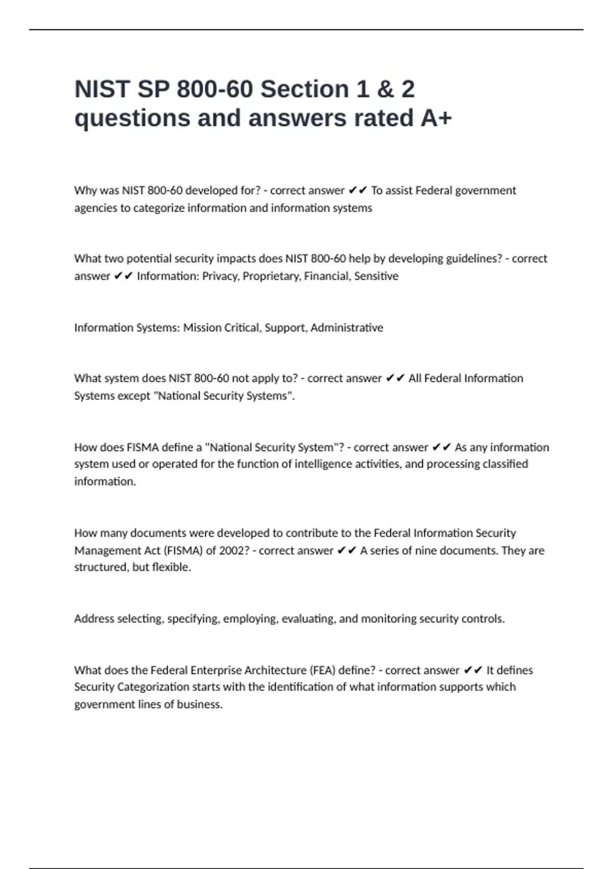 What system does NIST 800-60 not apply to? - correct answer ✔✔ All Federal Information