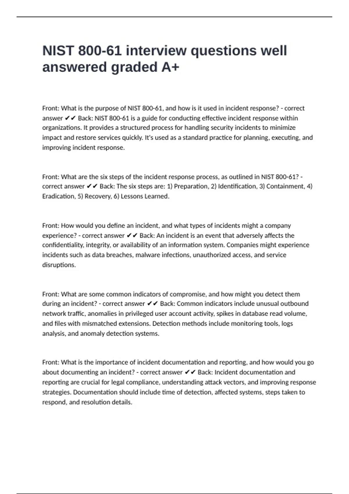 NIST 800-61 interview questions well answered graded A+