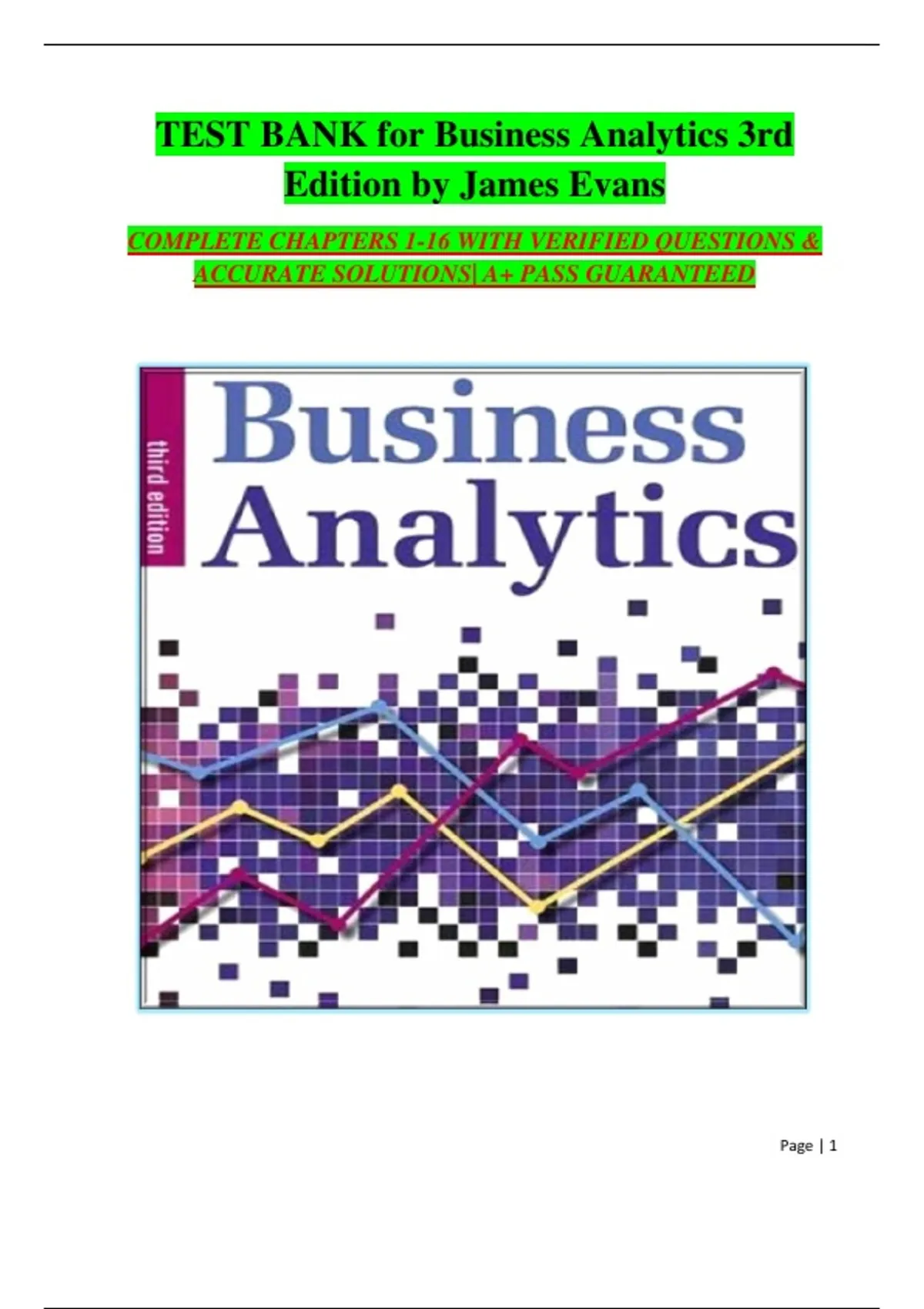 Test Bank Business Analytics 3rd Edition by James R. Evans 2025/2026 Complete Exam Questions and Verified Solutions All Chapters Latest Update