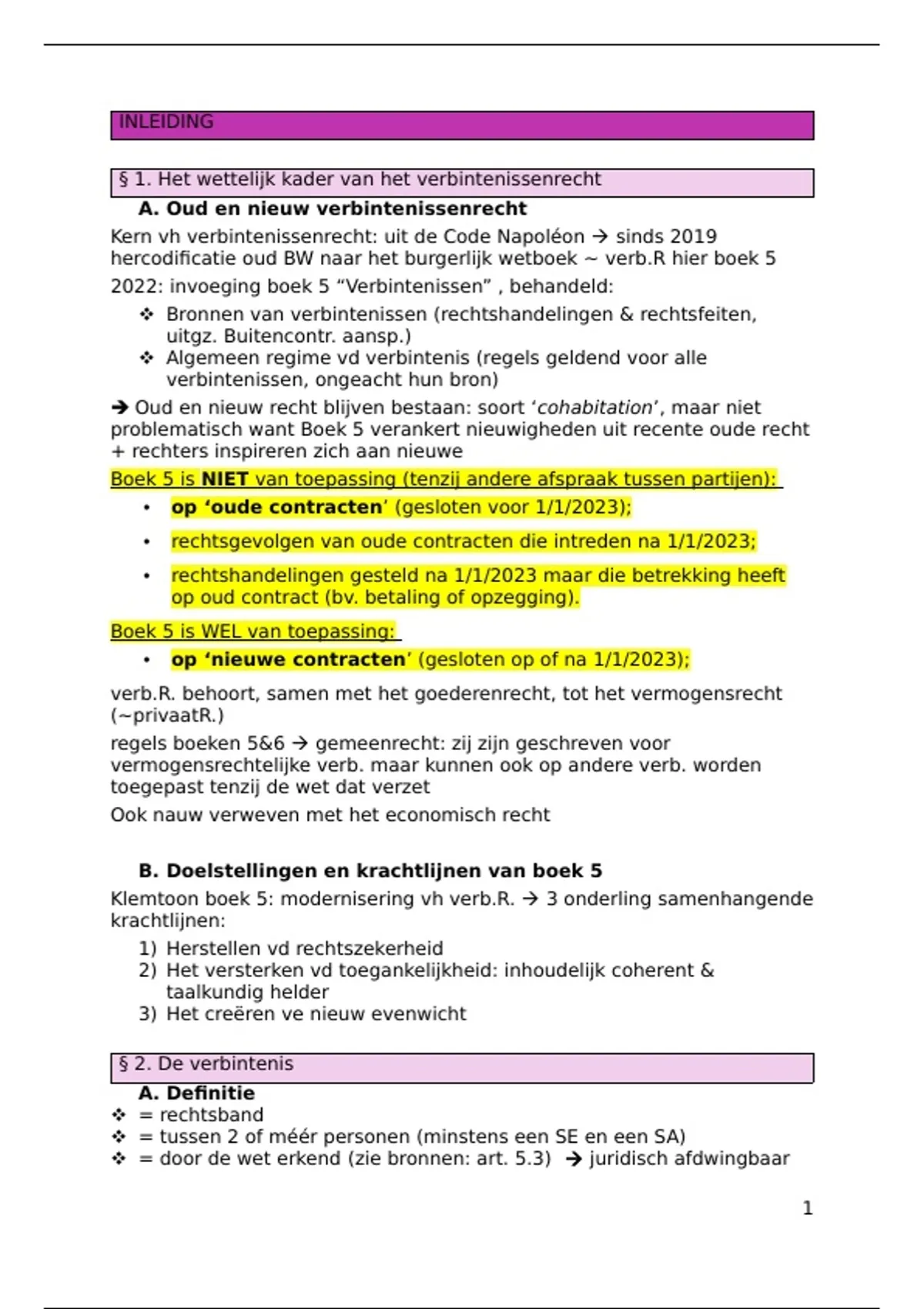 § 1. Het wettelijk kader van het verbintenissenrecht