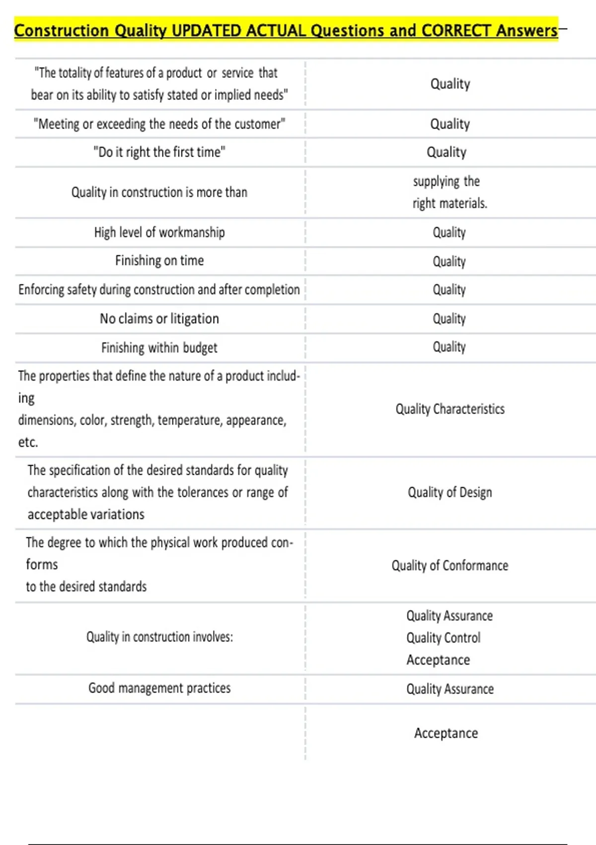 Quality in construction involves: Quality Control