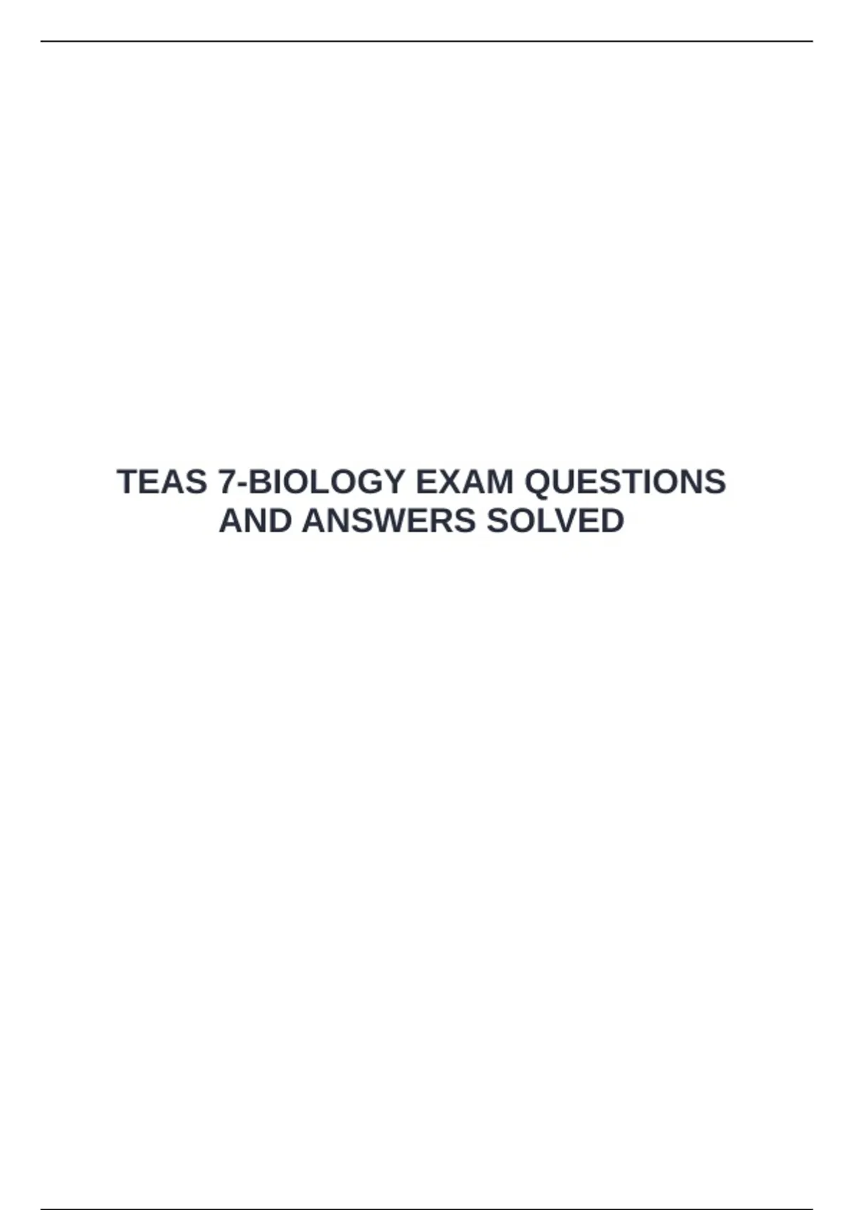 TEAS 7-BIOLOGY EXAM QUESTIONS AND ANSWERS SOLVED