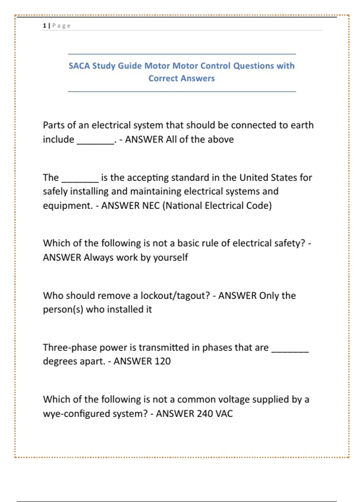 SACA Study Guide Motor Motor Control Questions with