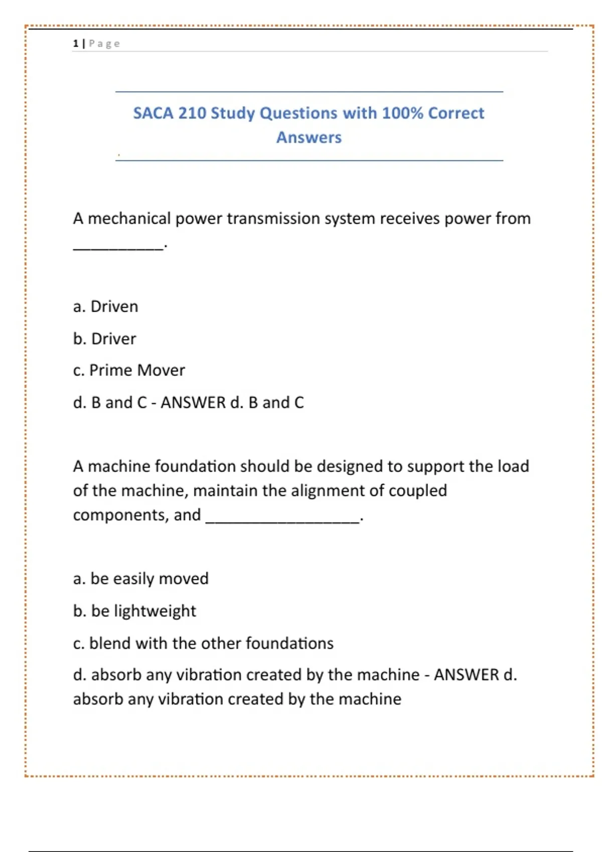 SACA 210 Study Questions with 100% Correct Answers.