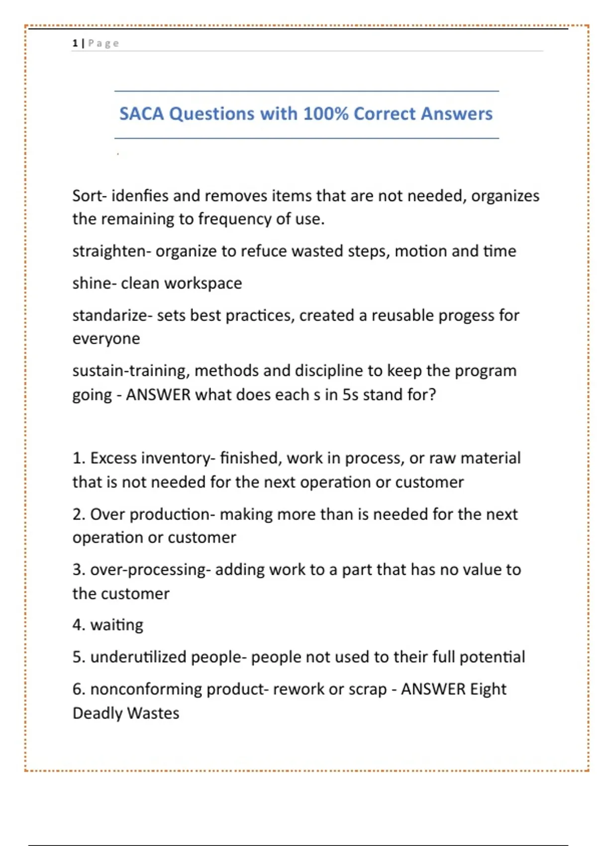 SACA Questions with 100% Correct Answers