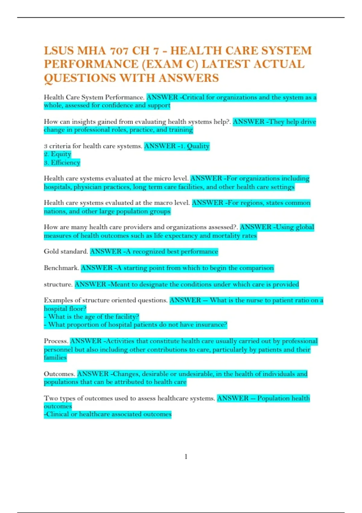 Health Care System Performance. ANSWER -Critical for organizations and the system as a