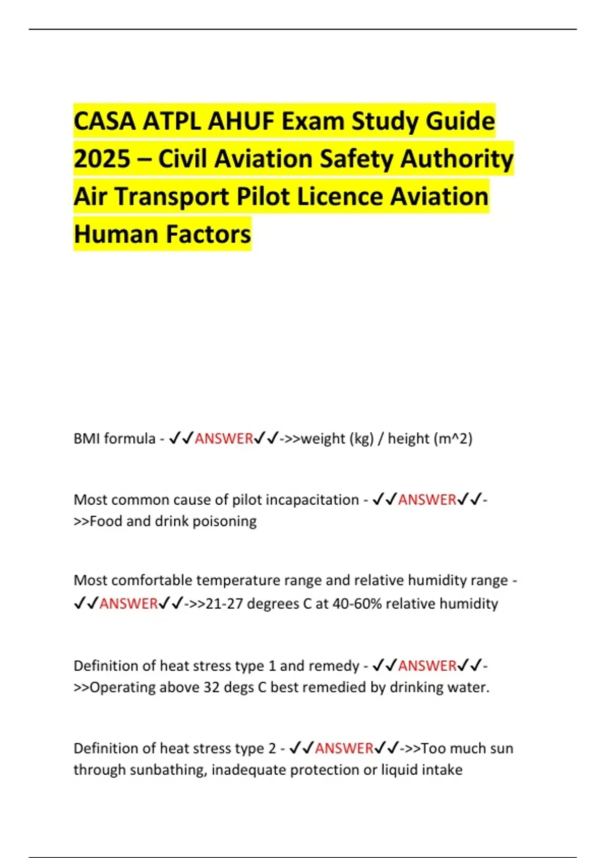 Definition of heat stress type 1 and remedy - ✔✔ANSWER✔✔-