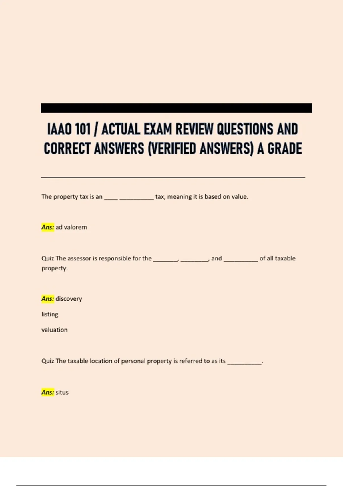 Quiz The taxable location of personal property is referred to as its __________.