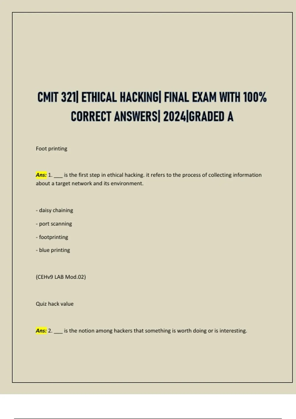 Ans: 1. ___ is the first step in ethical hacking. it refers to the process of collecting information