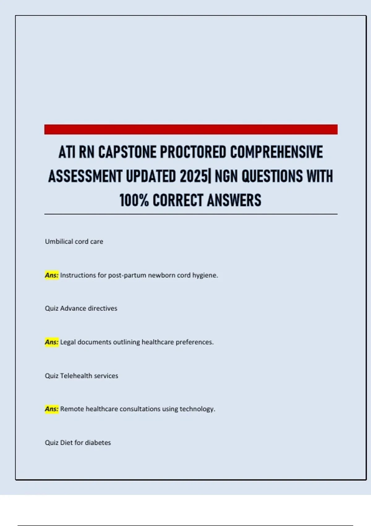 Ans: Instructions for post-partum newborn cord hygiene.