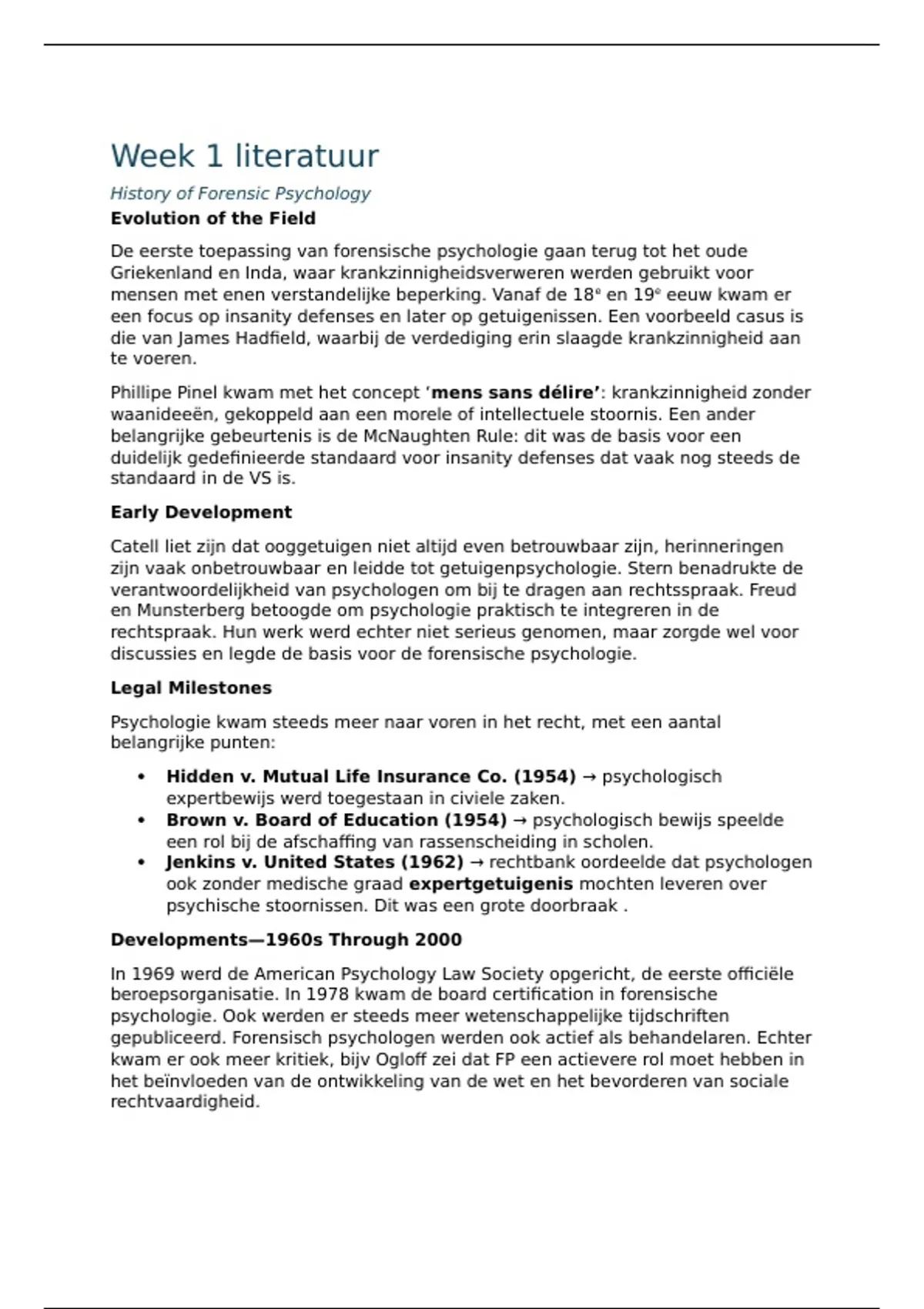 een focus op insanity defenses en later op getuigenissen. Een voorbeeld casus is