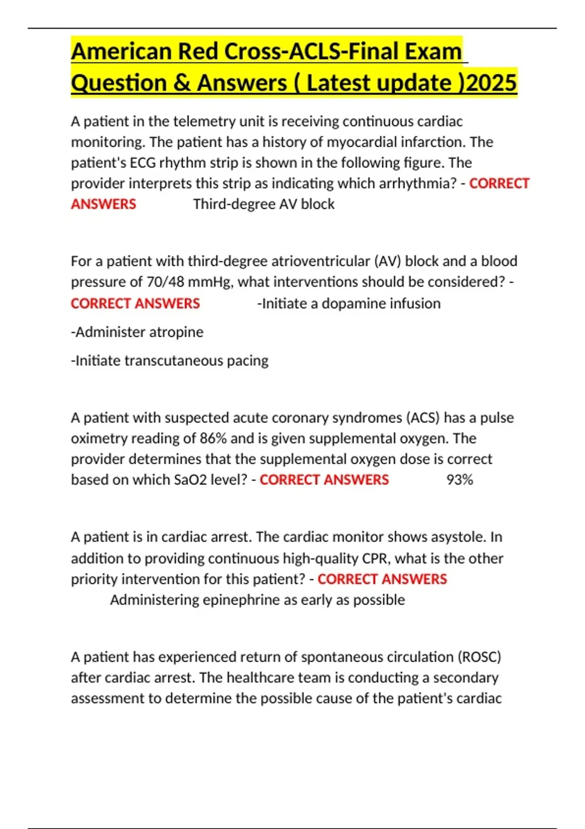 American Red Cross-ACLS-Final Exam Question & Answers ( Latest update )2025.docx