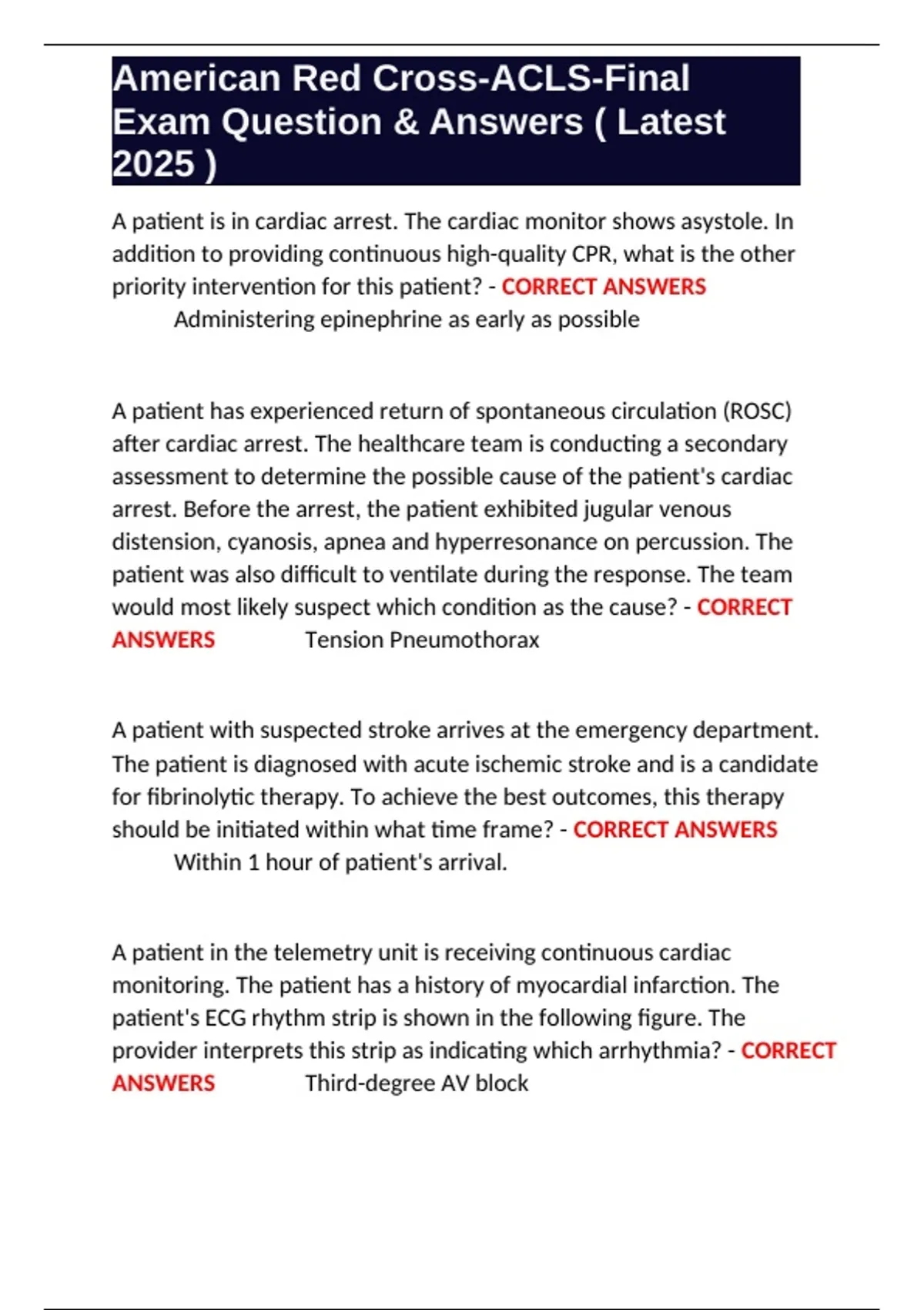 American Red Cross-ACLS-Final Exam Question & Answers ( Latest 2025 ).docx