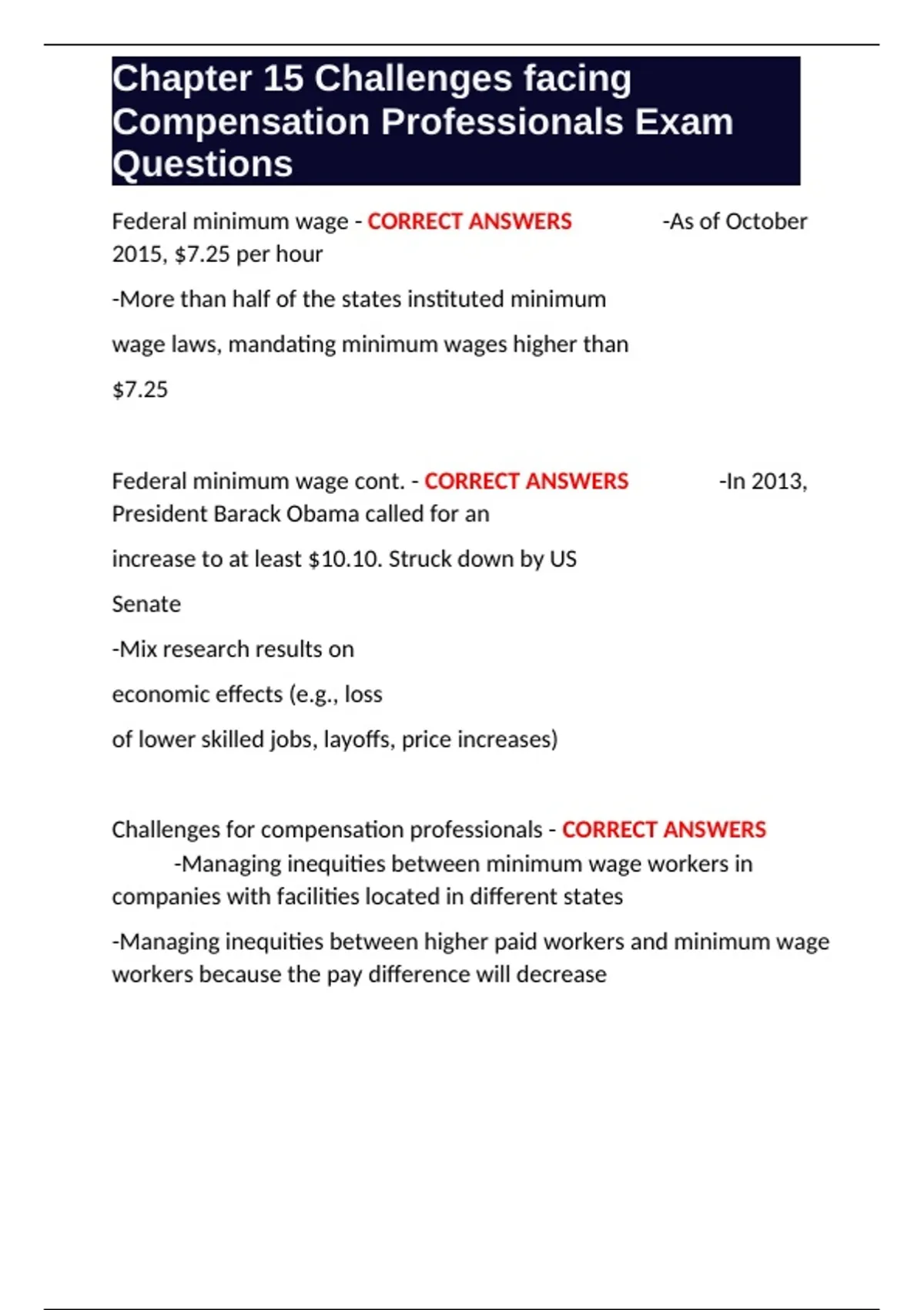 Challenges for compensation professionals cont.. - CORRECT ANSWERS