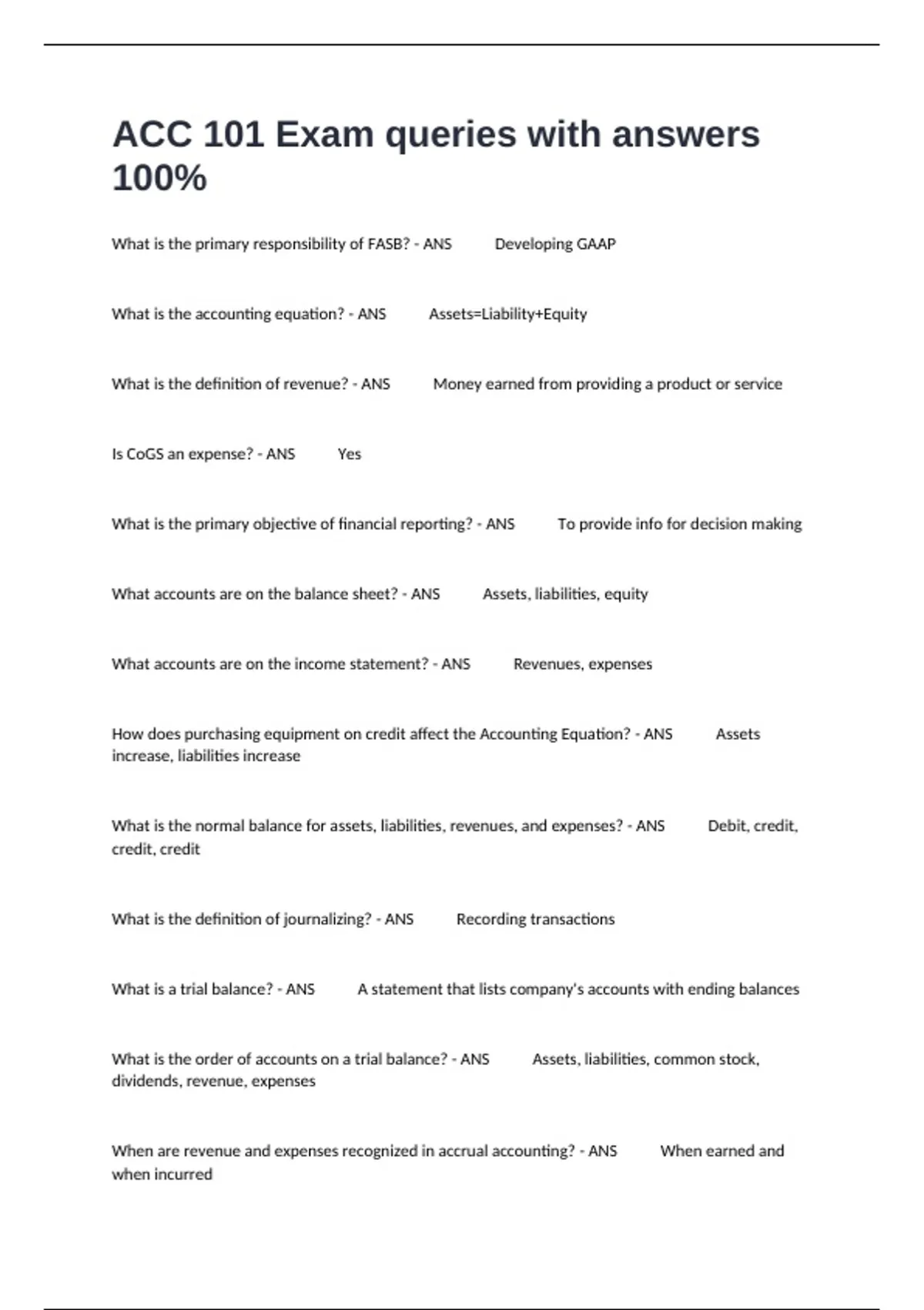 ACC 101 Exam queries with answers