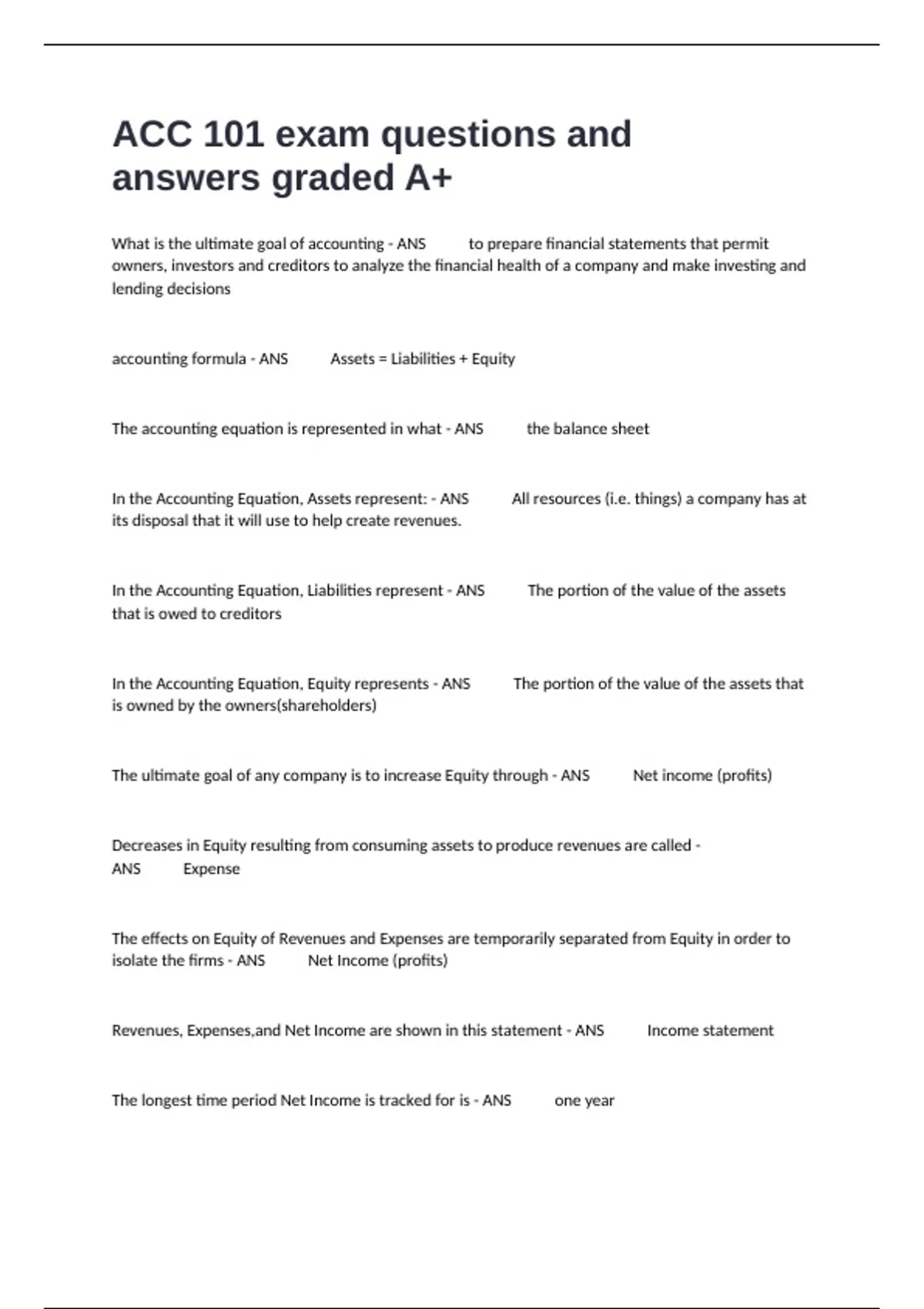ACC 101 exam questions and