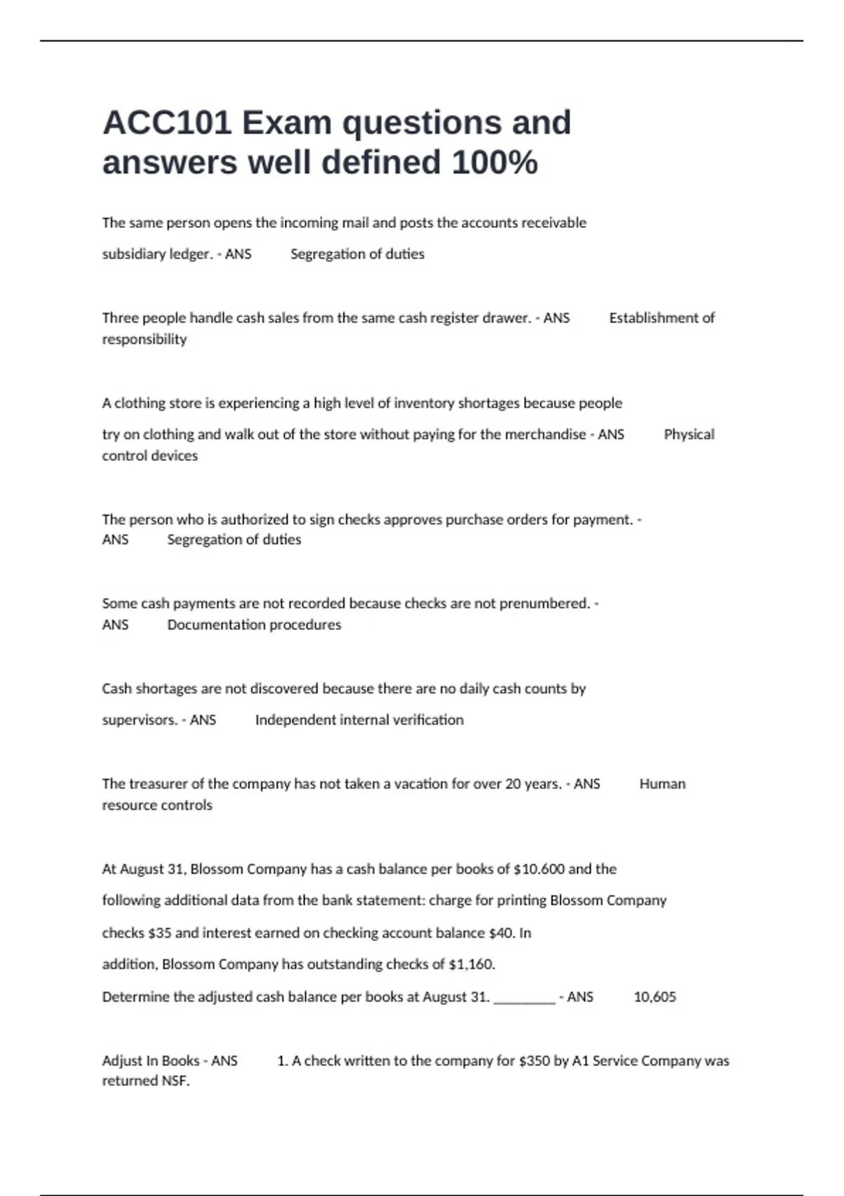 subsidiary ledger. - ANS✅✅Segregation of duties