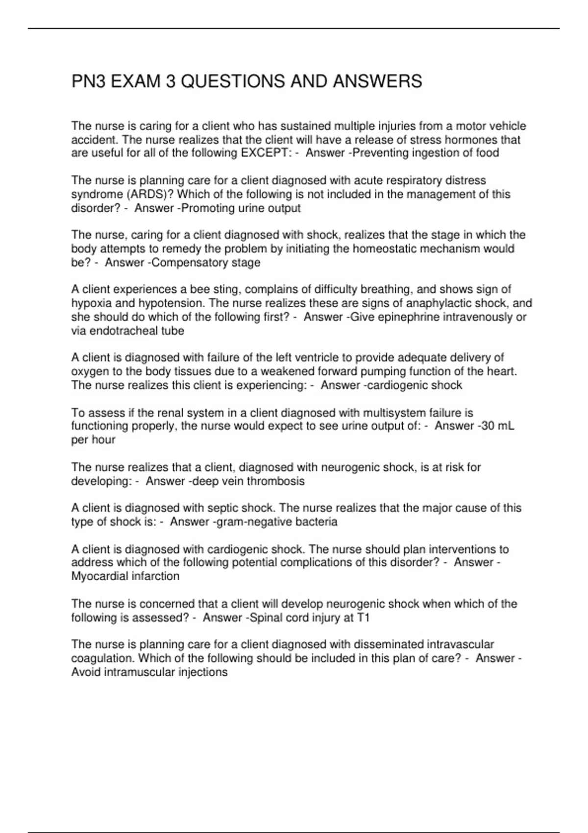 PN3 EXAM 3 QUESTIONS AND ANSWERS