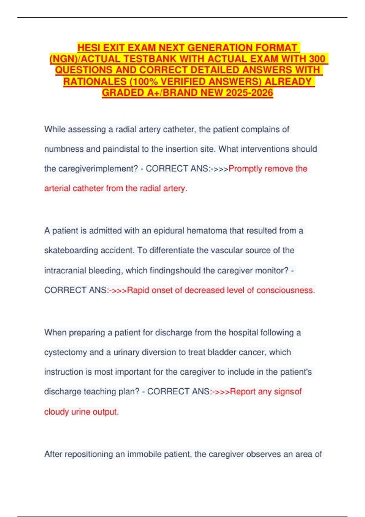 (NGN)/ACTUAL TESTBANK WITH ACTUAL EXAM WITH 300