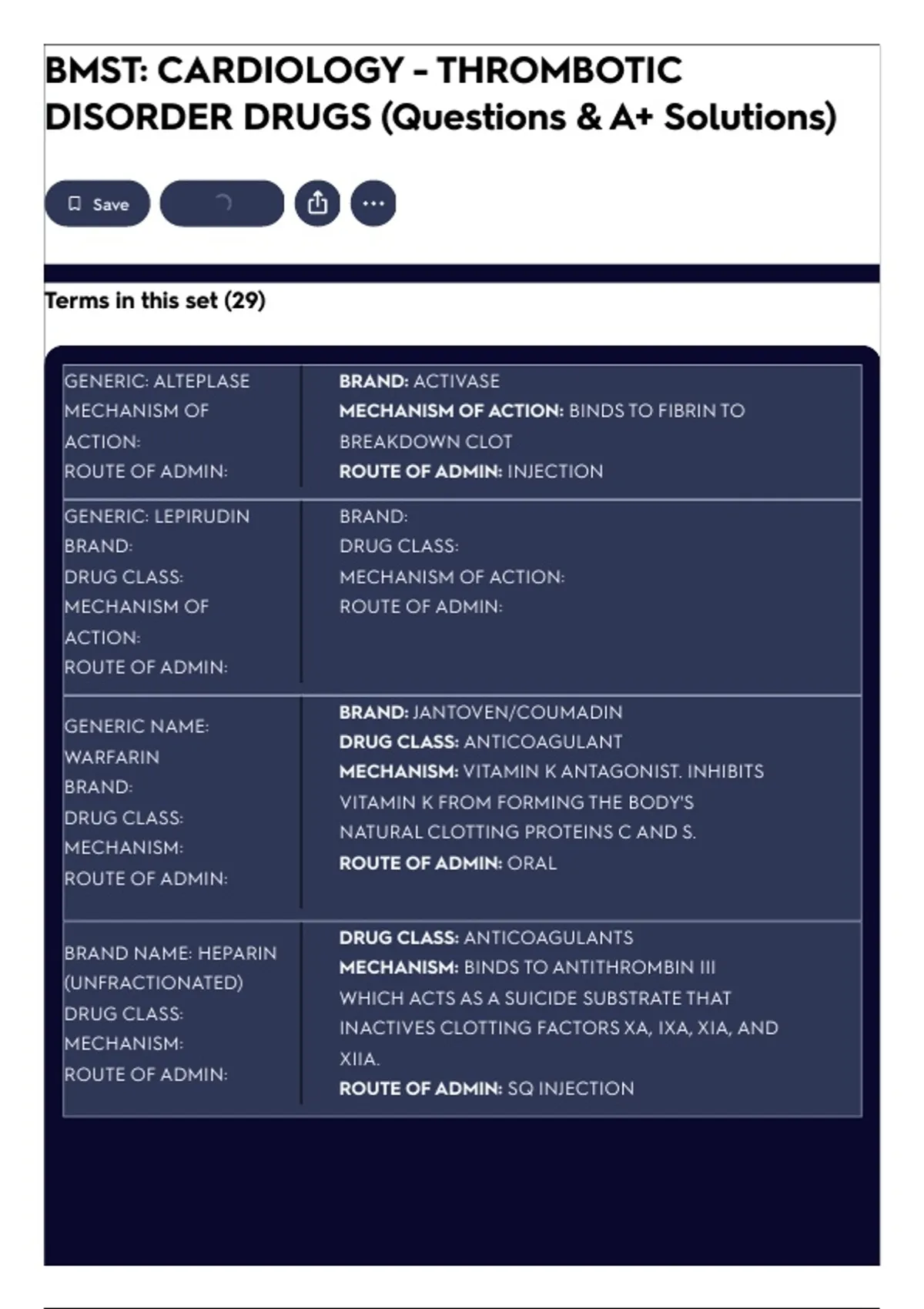 DRUG CLASS: ANTICOAGULANTS