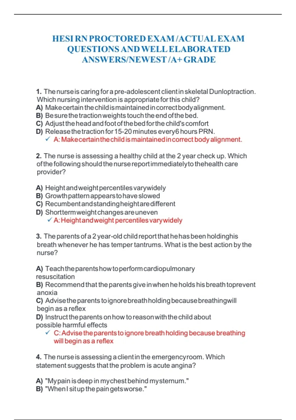 HESI RN PROCTORED EXAM /ACTUAL EXAM QUESTIONS AND WELL ELABORATED ANSWERS/NEWEST /A+ GRADE