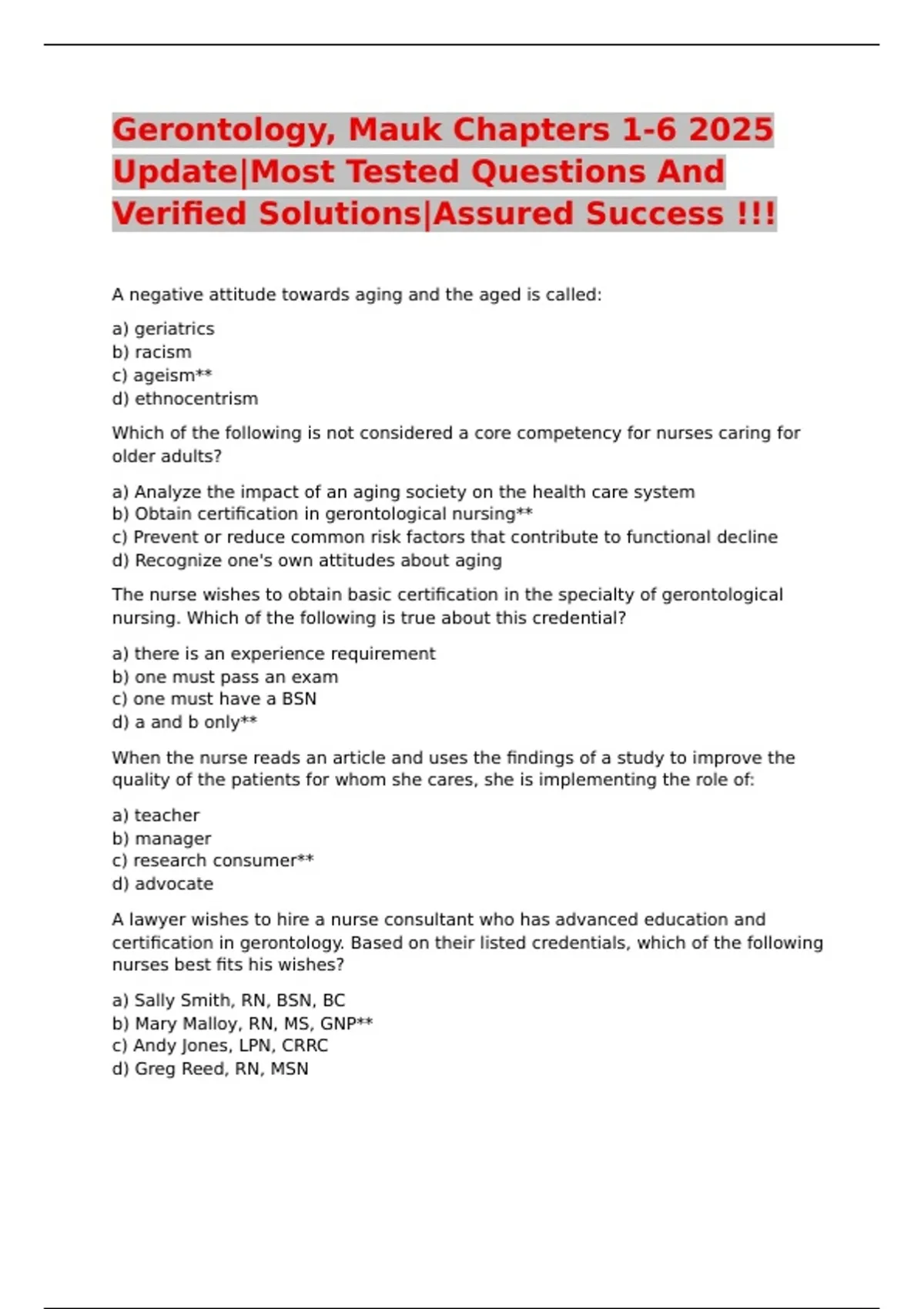 Gerontology, Mauk Chapters 1-6 2025 Update|Most Tested Questions And Verified Solutions|Assured Success !!!