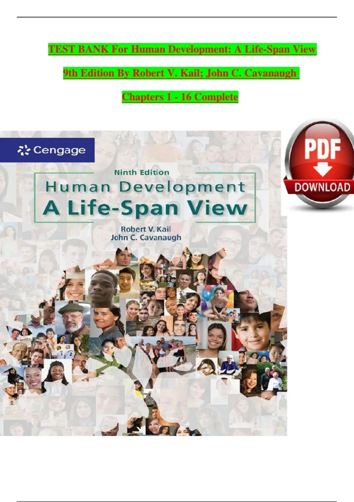 TEST BANK For Human Development: A Life-Span View 9th Edition By Robert V. Kail; John C. Cavanaugh Chapters 1 - 16 Complete