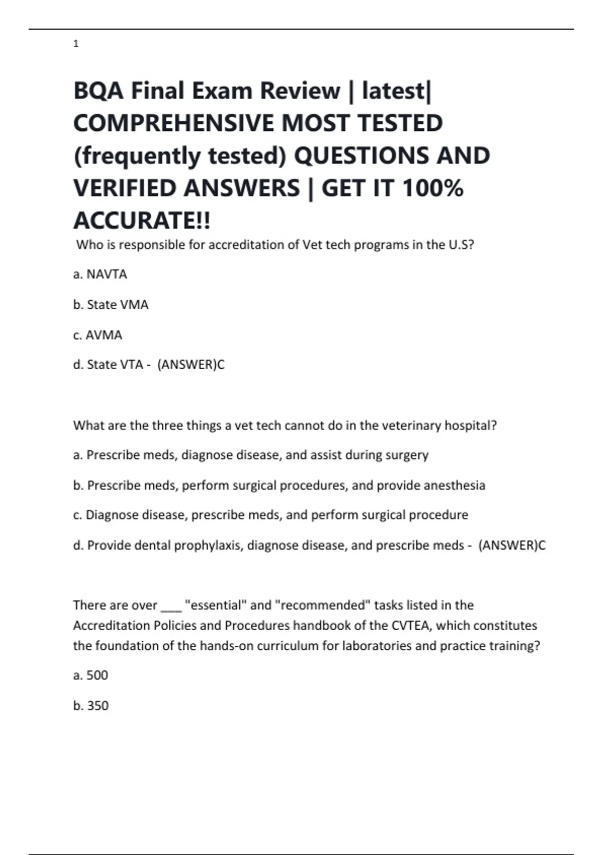 c. Passing grade on an exam given by a state and the Veterinary Technician